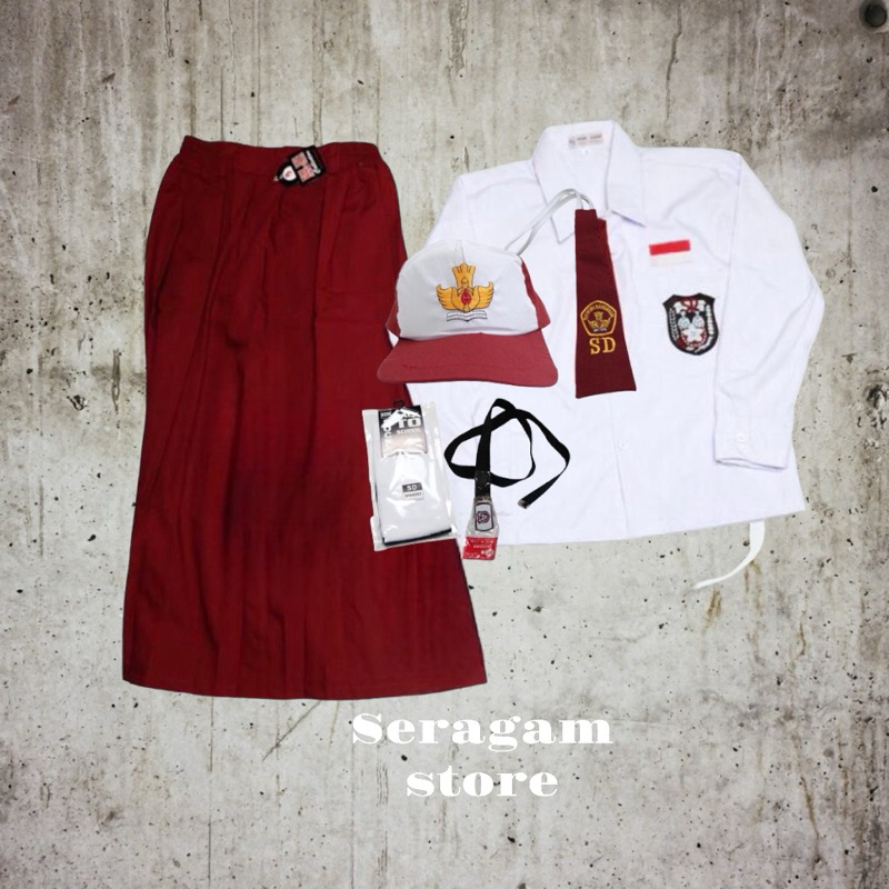 Setelan Super Lengkap seragam sekolah SD BAJU PANJANG ROK PANJANG Perempuan Cewek