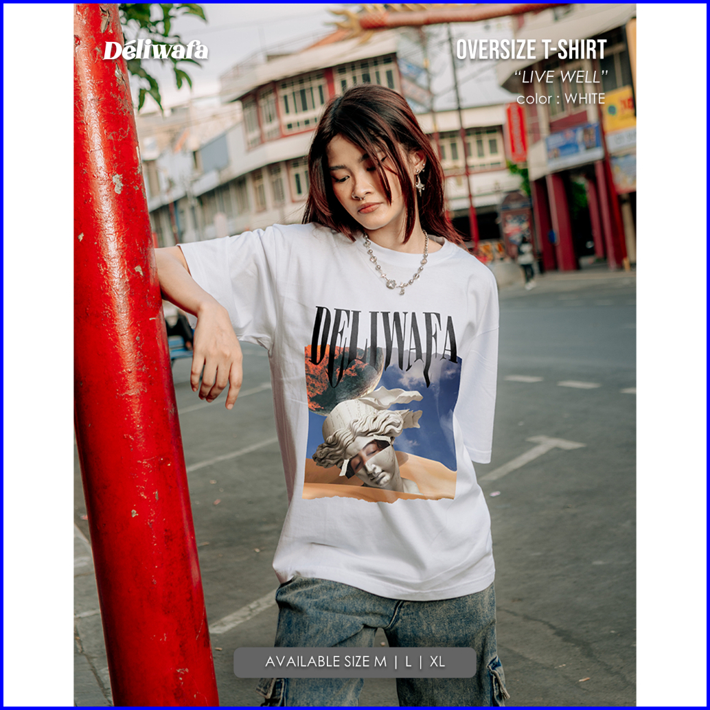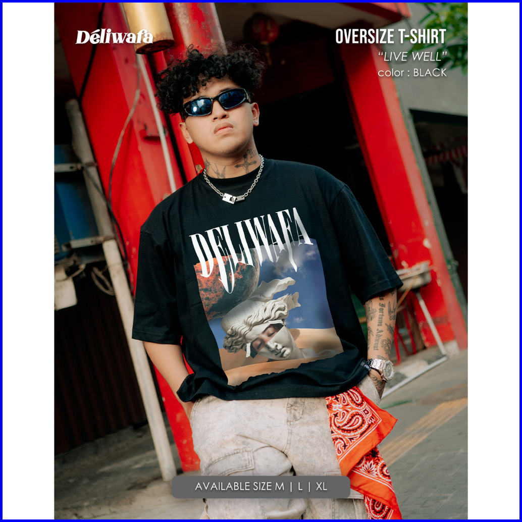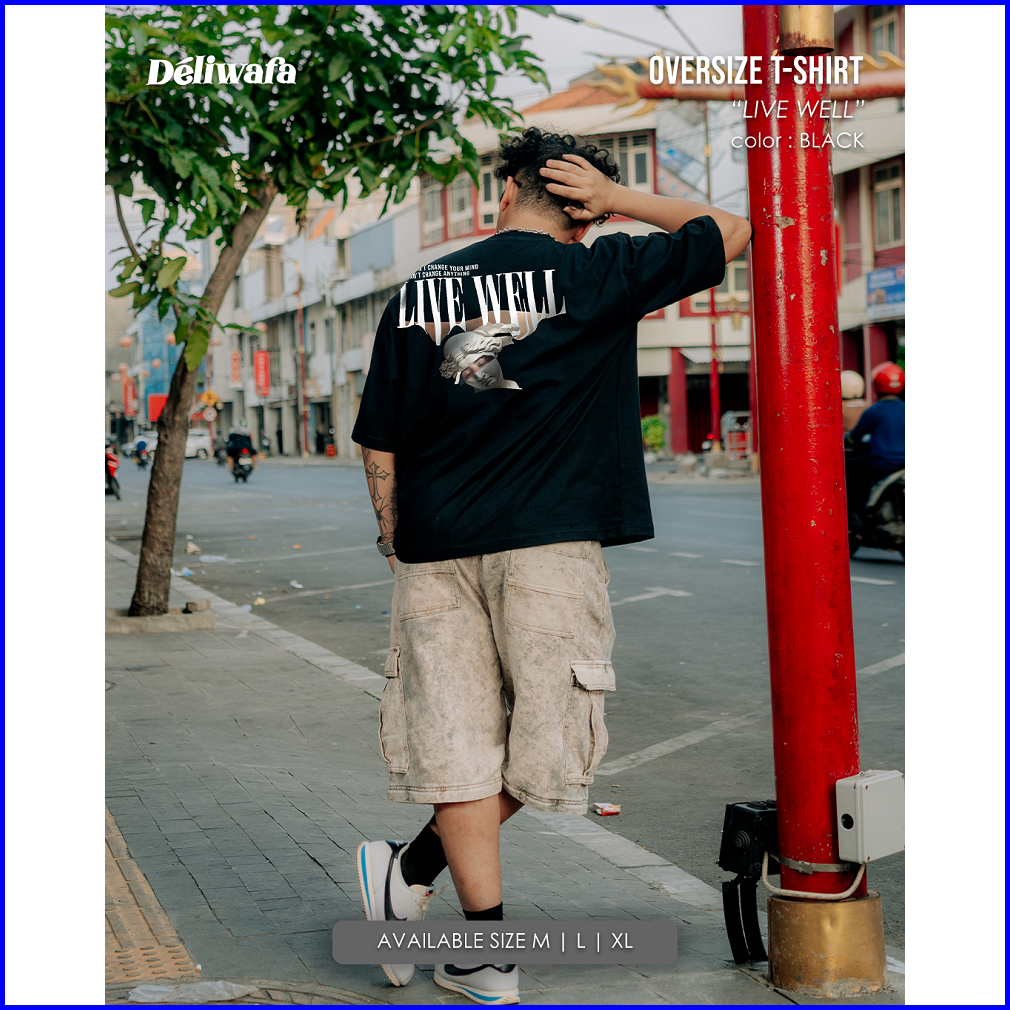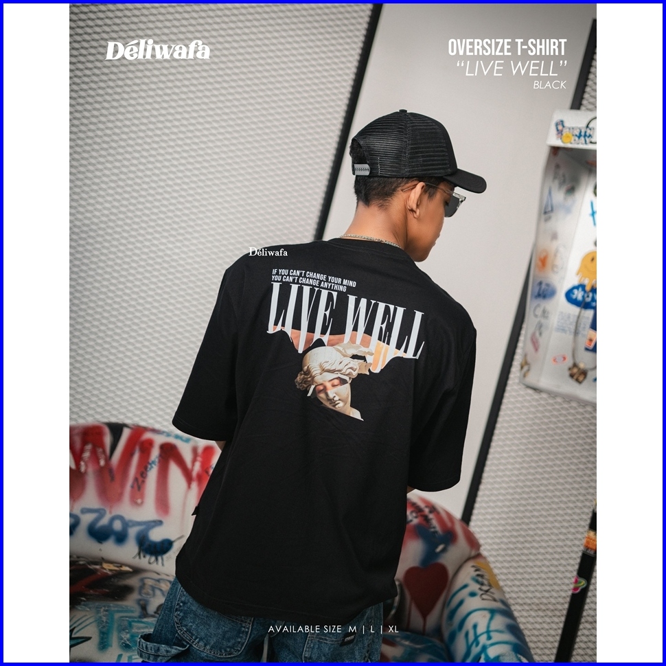 Deliwafa - Live Well T-shirt Oversize Kaos Lengan Pendek Baju Pria Wanita