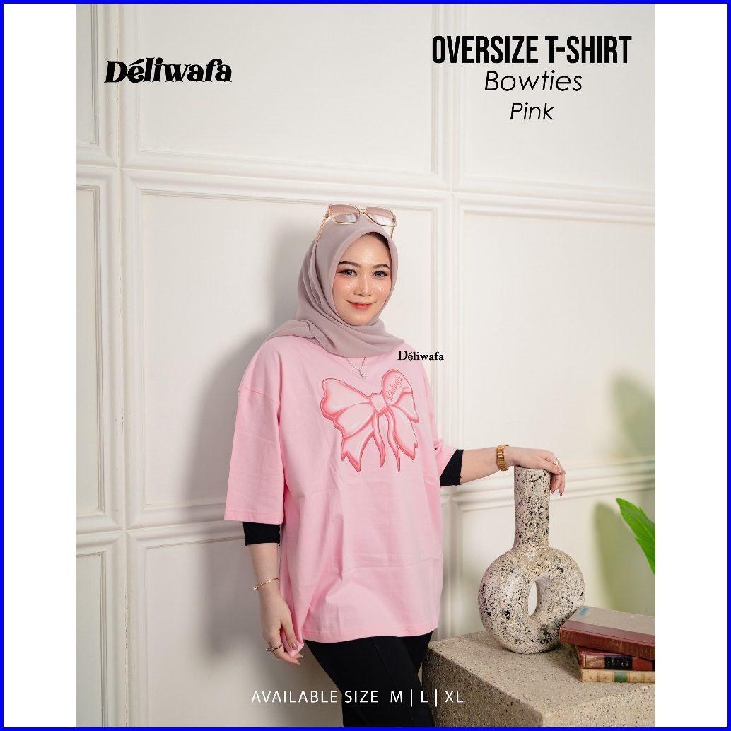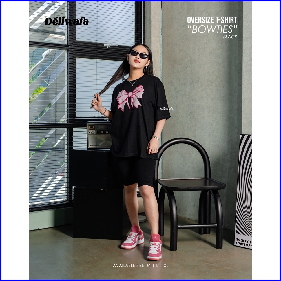 Deliwafa - Bowties T-shirt Oversize Baju Pria Wanita