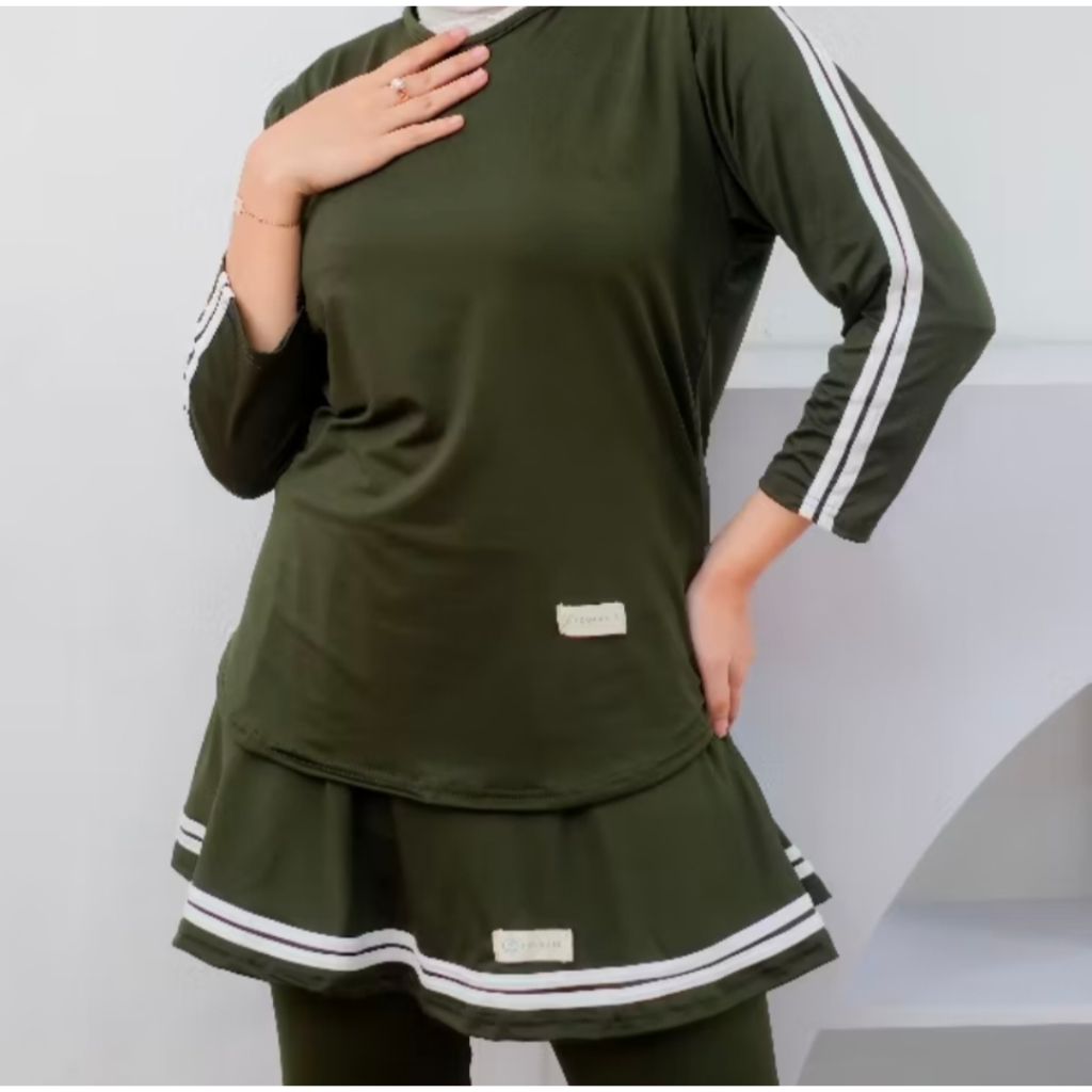 Setelan Rok Legging Baju Senam Wanita Zumba Olahraga Bersepeda Renang Yoga Tenis Baju Setelan Sport