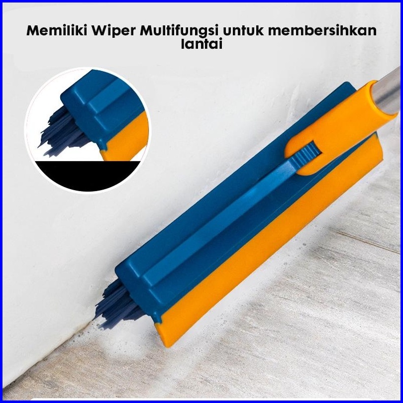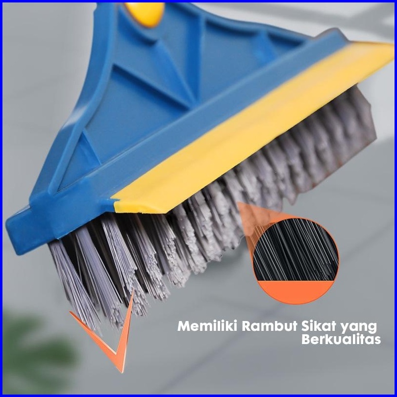 Paus Biru - Sikat Lantai Multifungsi 3 In 1 Sapu Sikat Wiper Sikat Toilet Lantai Sikat Dorong Gagang Panjang
