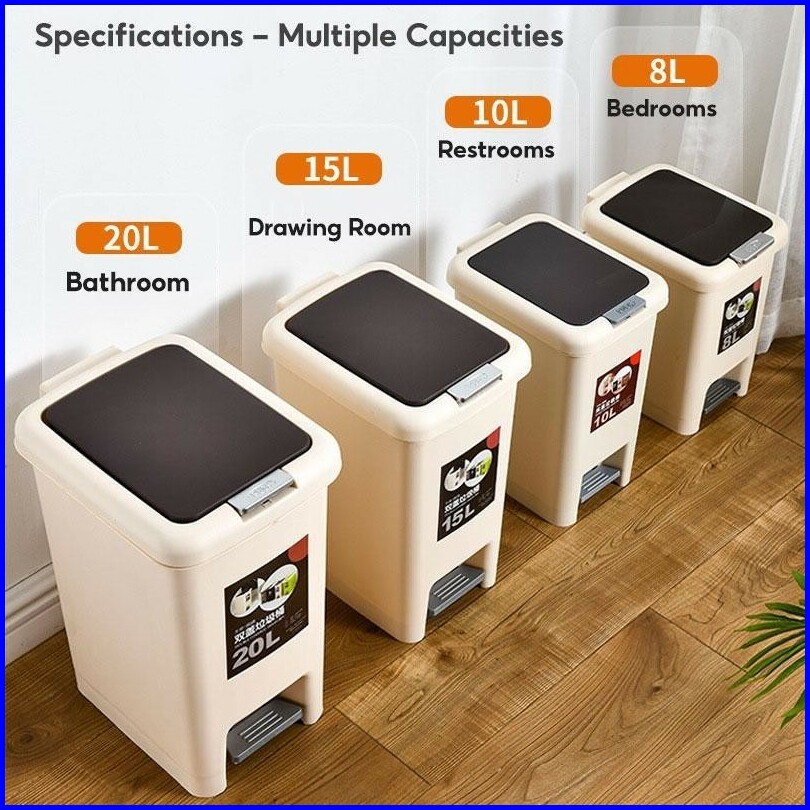 Paus Biru - Tempat Sampah Plastik Tertutup Tong Sampah Injak 8l 10l 15l 20l Trash Bin Toilet Dapur