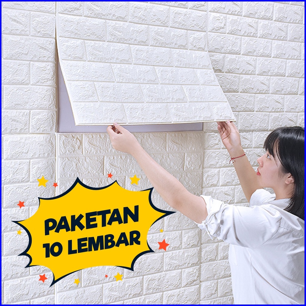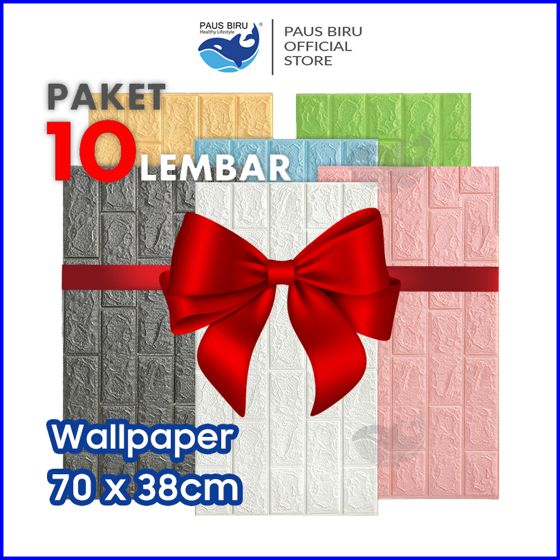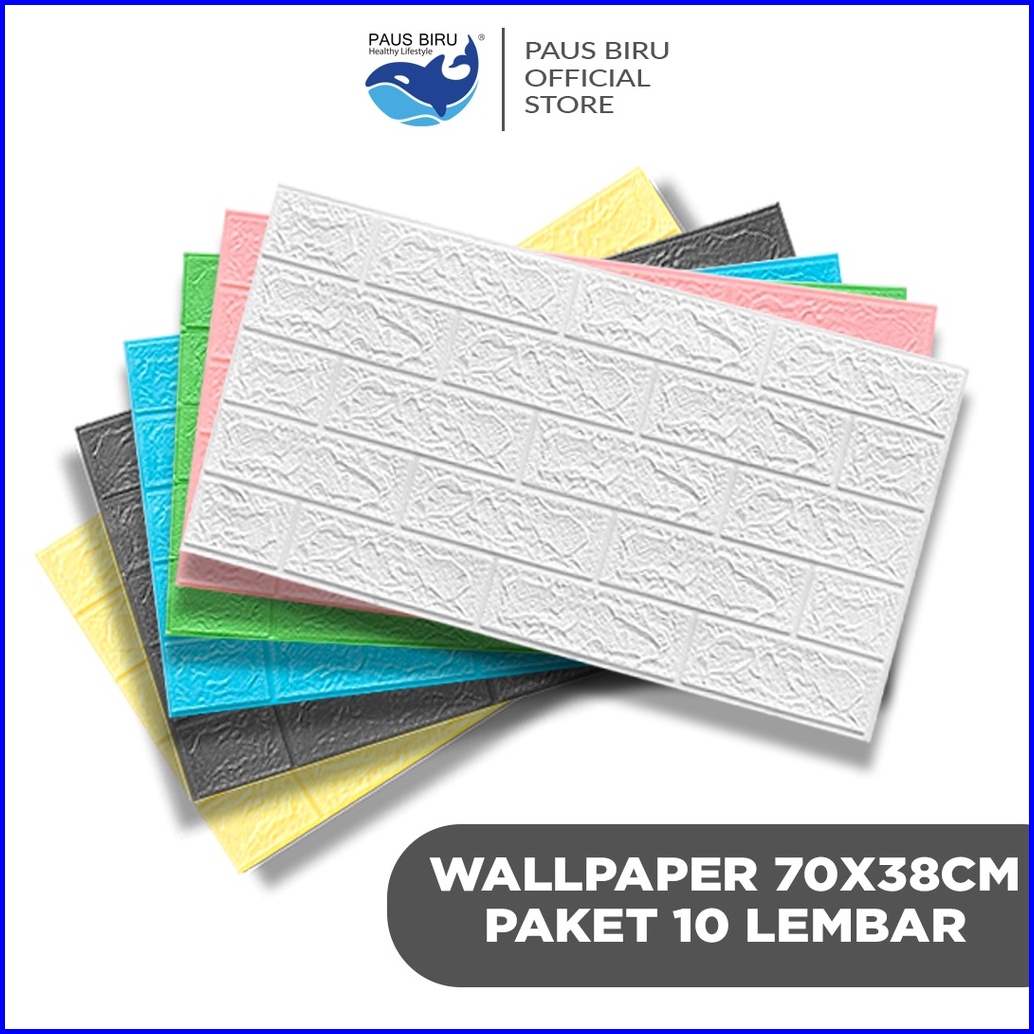 Paus Biru - Paket 10 Lembar Wallpaper Dinding 3d Foam Dekorasi Motif Batu Bata 70x38cm