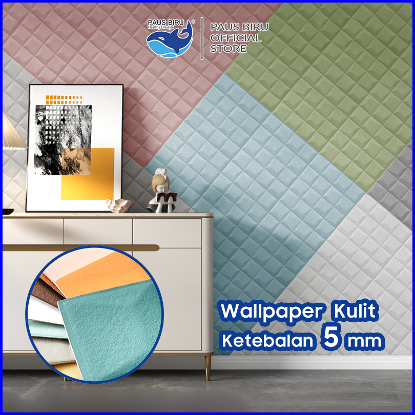 Paus Biru - Wallpaper Sticker Foam Motif Diamond Bahan Kulit Ukuran 34 5cm X 34 5cm A47