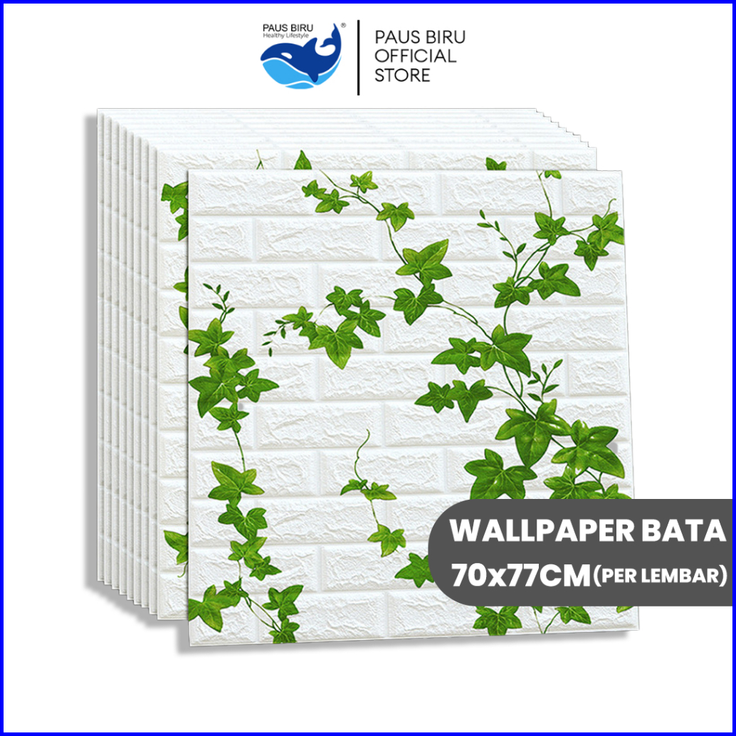 Paus Biru - Wallpaper Dinding Ukuran Besar 70x77cm 3d Foam Bata Classic Sticker Motif Daun Rambat