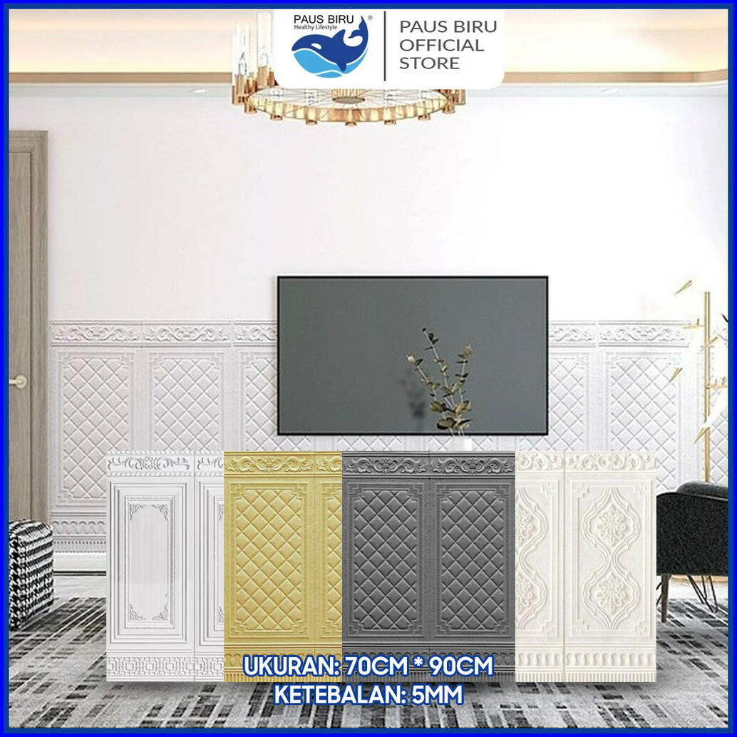 Paus Biru - Wallpaper Dinding Foam Motif Pintu Jati 3d Wallfoam Panjang 70x90cm Tebal 5mm Qw