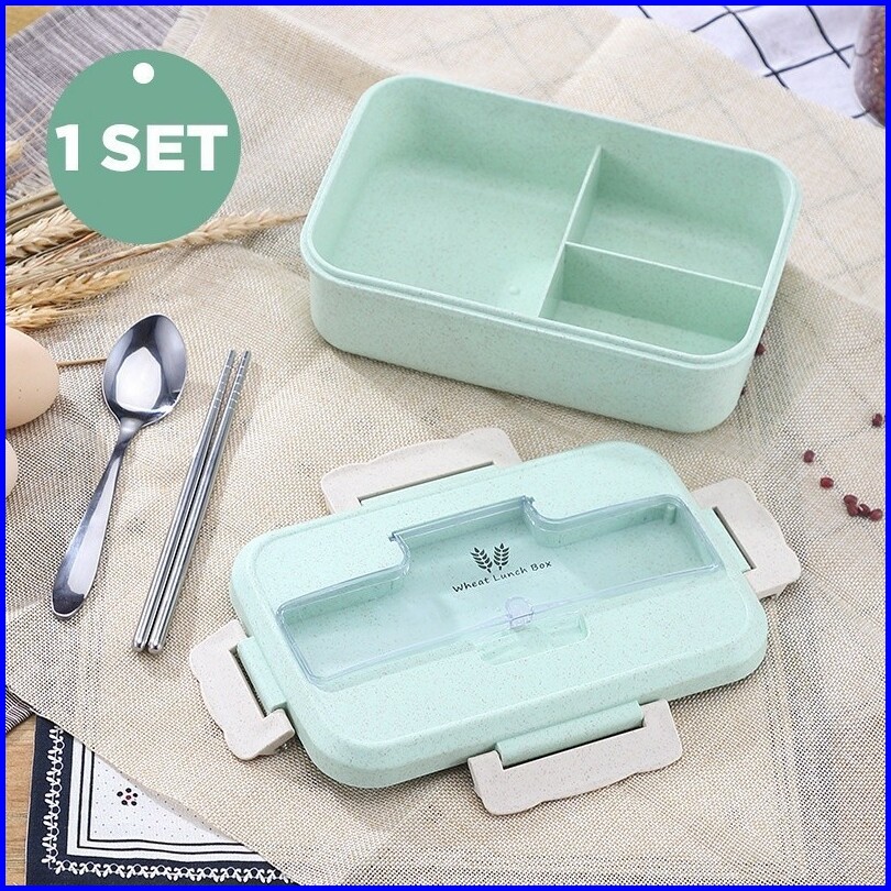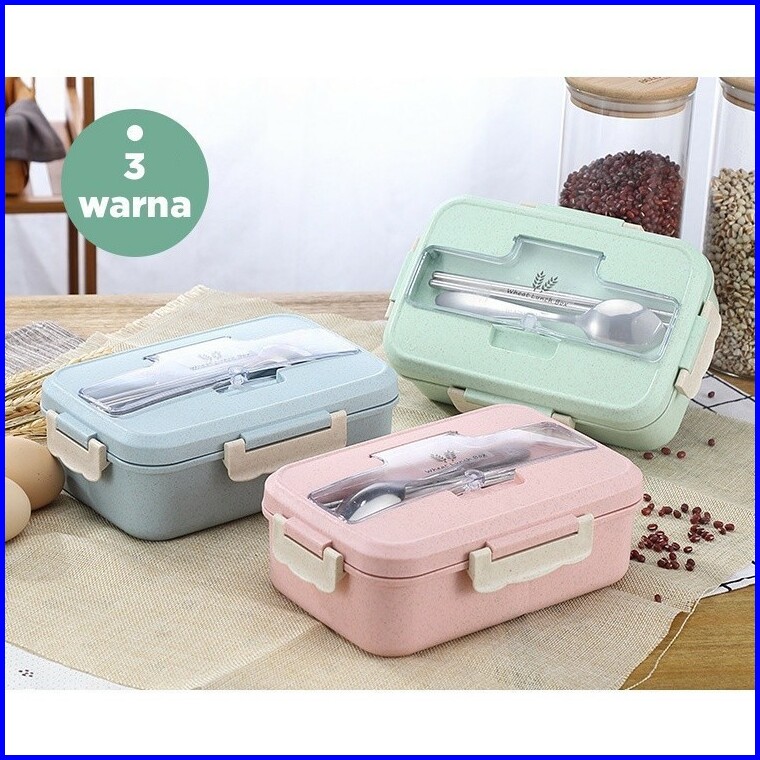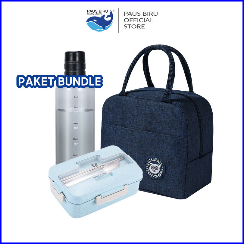 Paus Biru - Lunch Box Set Kotak Bekal Makan 1000ml Jerami Gandum Paket Free Sendok Sumpit
