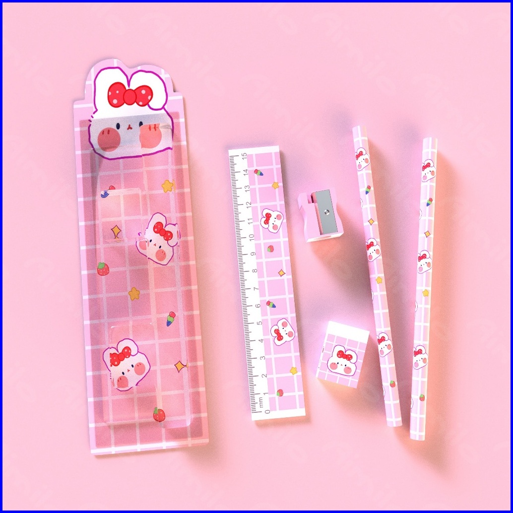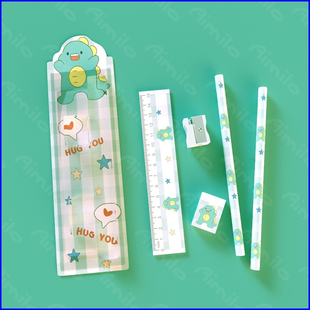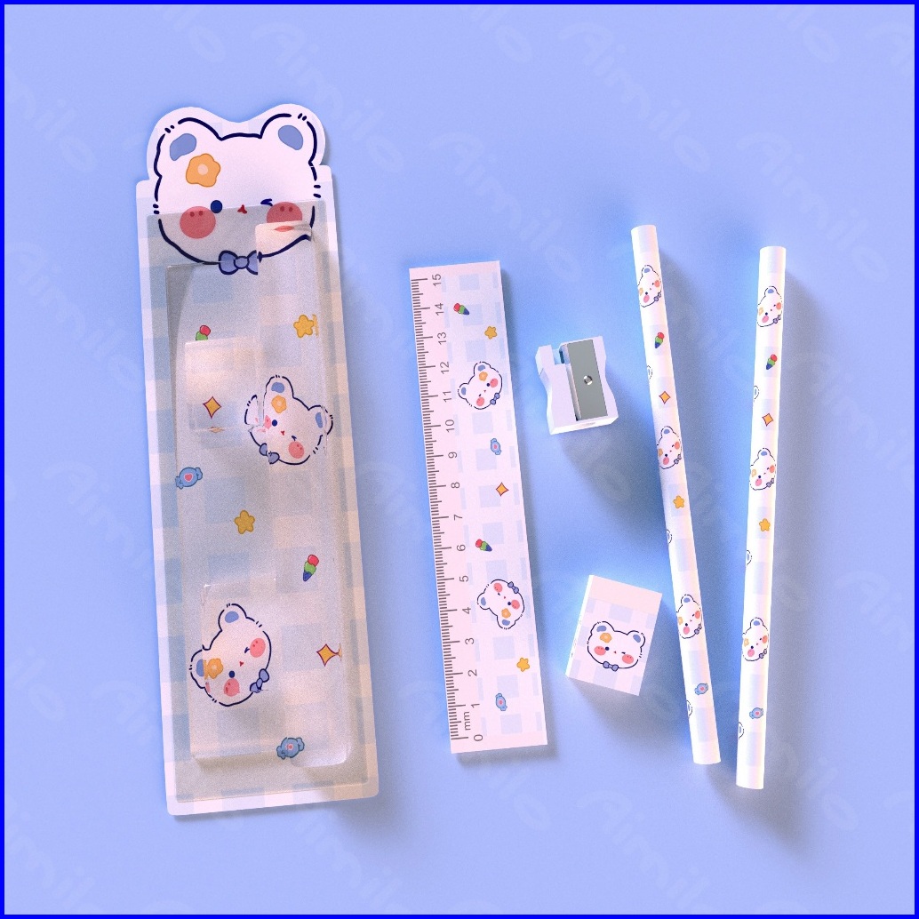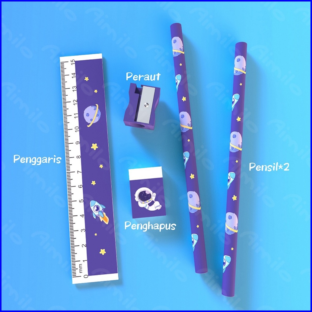 Ready Aimilo 5in1 Pensil Set Alat Tulis Anak Lucu Dan Penghapus Untuk Tempat Pensil Buku Tulis Sekolah