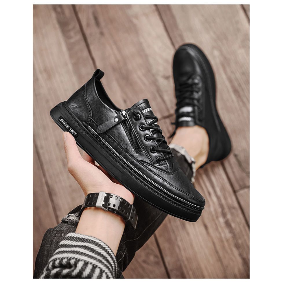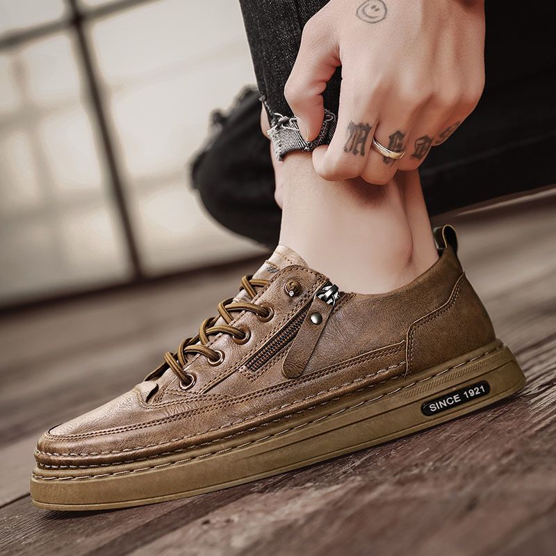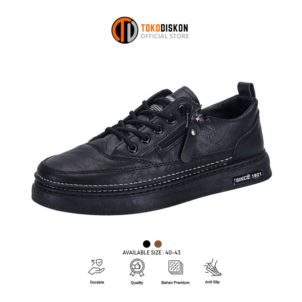 Sepatu sneakers model Kulit Casual Remaja Pria Resleting sepatu kerja sekolah izna