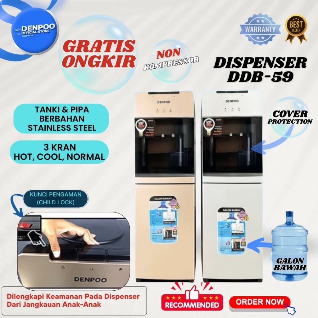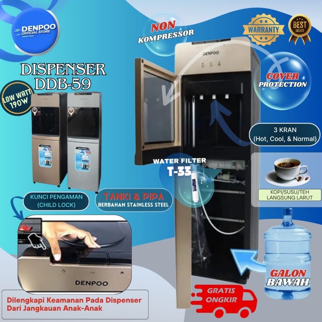 DISPENSER DENPOO GALON BAWAH NON KOMPRESOR DDB 59 FILTER T33 ( 190W )