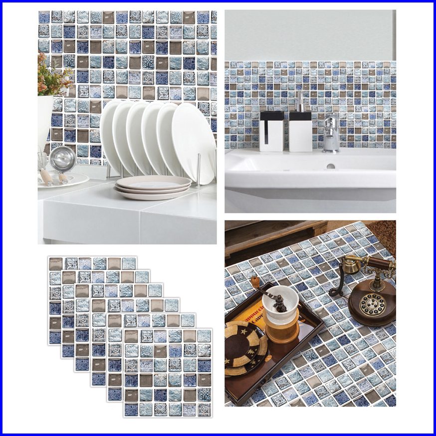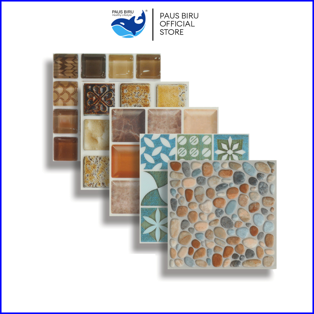 Paus Biru - 18 Pcs Stiker Dinding Mosaik 3d Pvc Anti Air Minyak Untuk Dapur Kamar Mandi Dekorasi