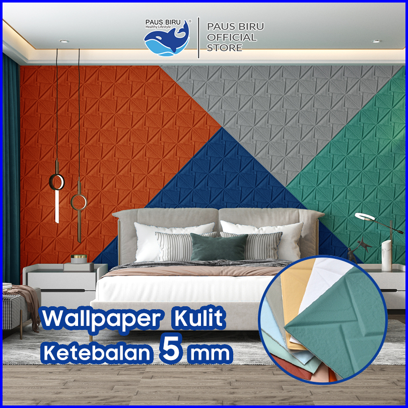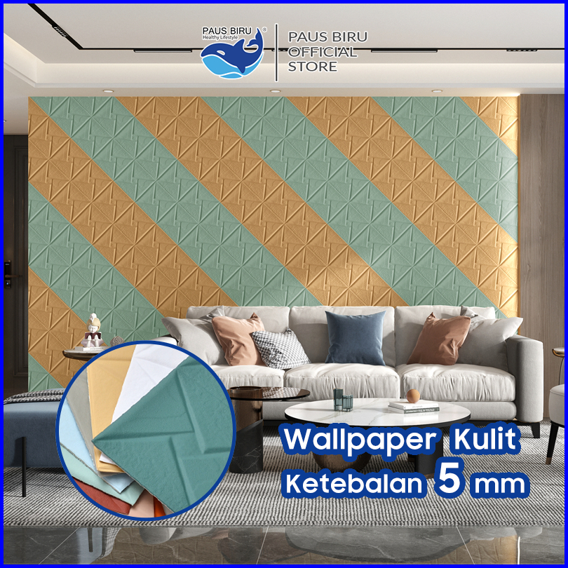Paus Biru - Wallpaper Sticker Foam Motif Diamond Bahan Kulit Ukuran 34 5cm X 34 5cm A49