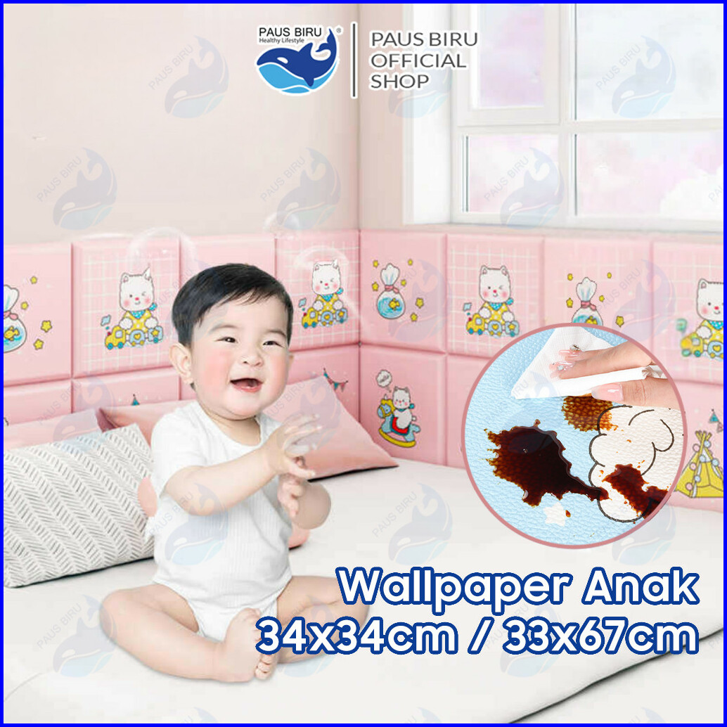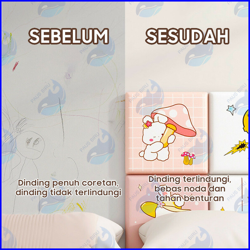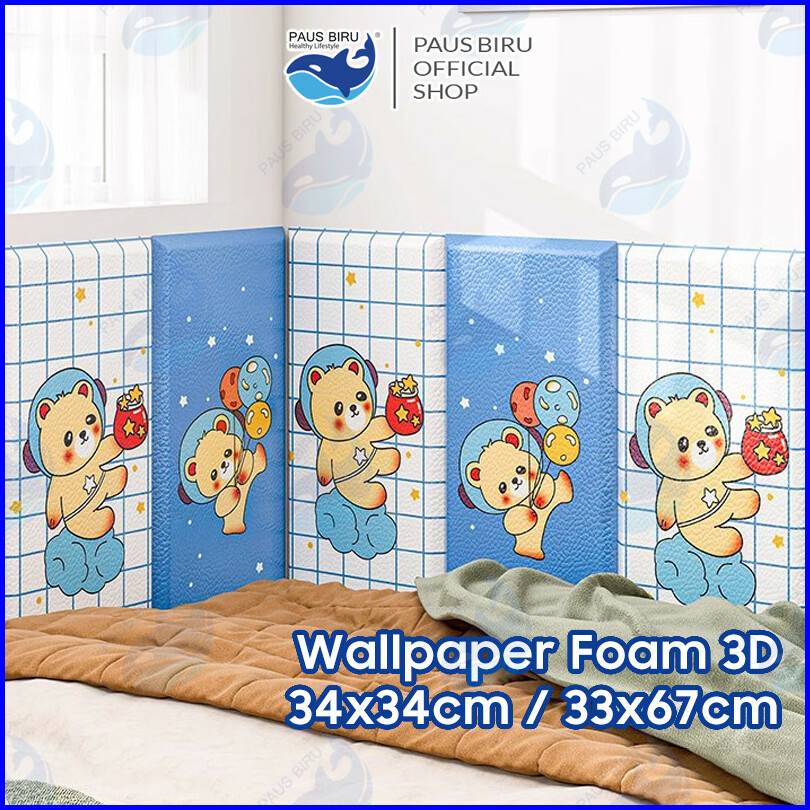 Paus Biru - Wallpaper Dinding Kamar Tidur Anak 3d Foam Aesthetic Tahan Air Sticker Dinding Bed Headboard Uk 34x34cm 33x6