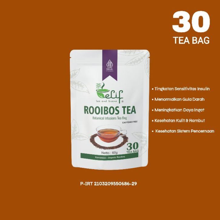 ELIF TEA AND TISANE Rooibos Tea | Teh Rooibos | African Red Tea | 30 Tea Bag