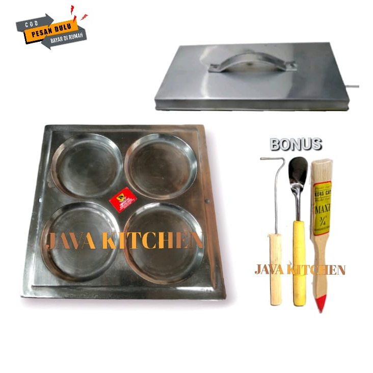 Cetakan kue leker Cetakan martabak manis lipat lubang 4 Set TUTUP Bonus kuas spatula dan pengait