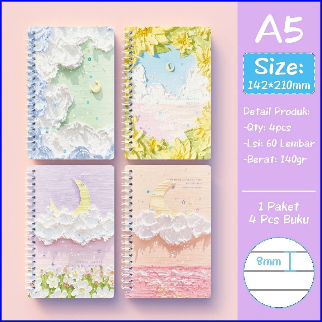 Ready Aimilo Notebook A5 1 Paket 4 Pcs Buku Diary Aesthetic Buku Jurnal Aesthetic Sekolah 40 Lembar