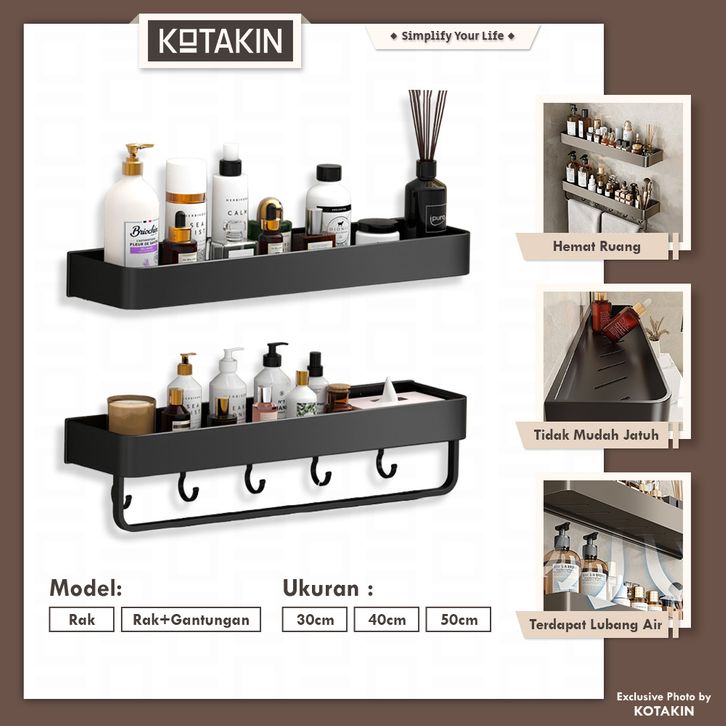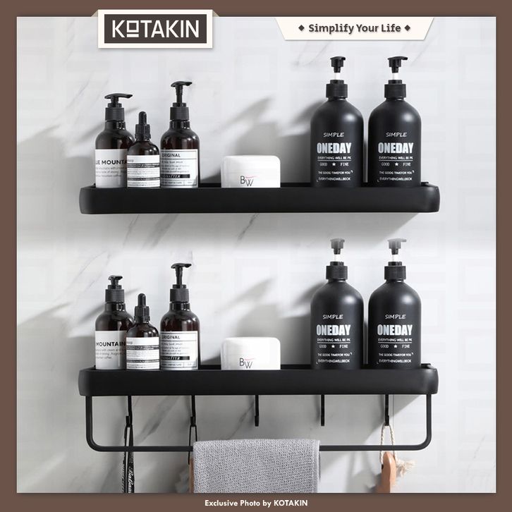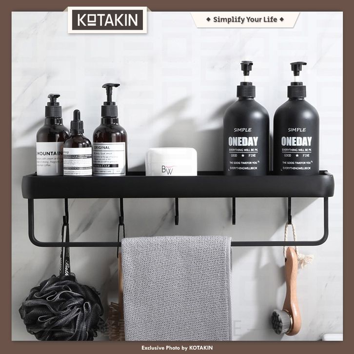 Rak Dinding Besi Tebal Tempel Sabun Shampoo Gantungan Handuk Lap Penyimpanan Bumbu Dapur Serbaguna