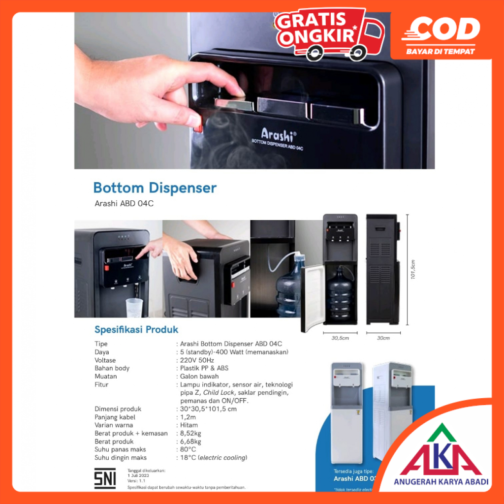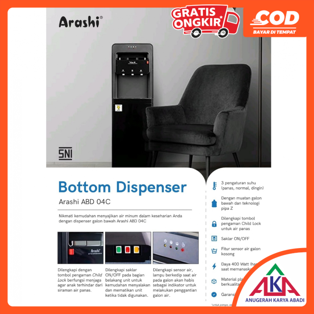 Arashi Bottom Dispenser ABD 04C Galon Bawah Panas / Normal / Dingin
