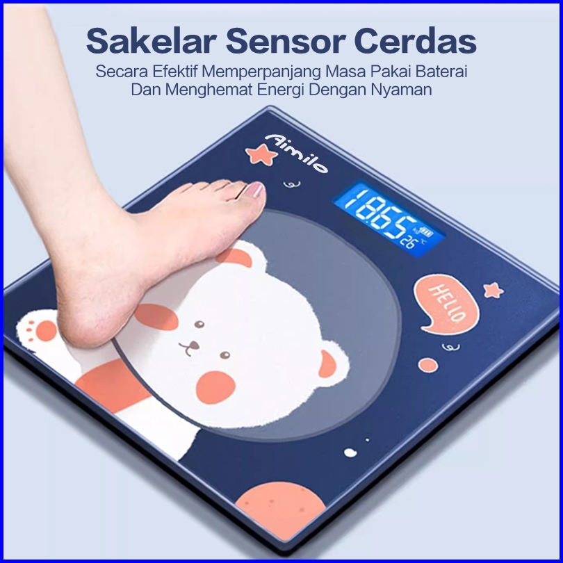 Ready Aimilo Timbangan Badan Digital Kartun Pengukuran Akurat Timbangan Layar Lcd Berat Max 180kg