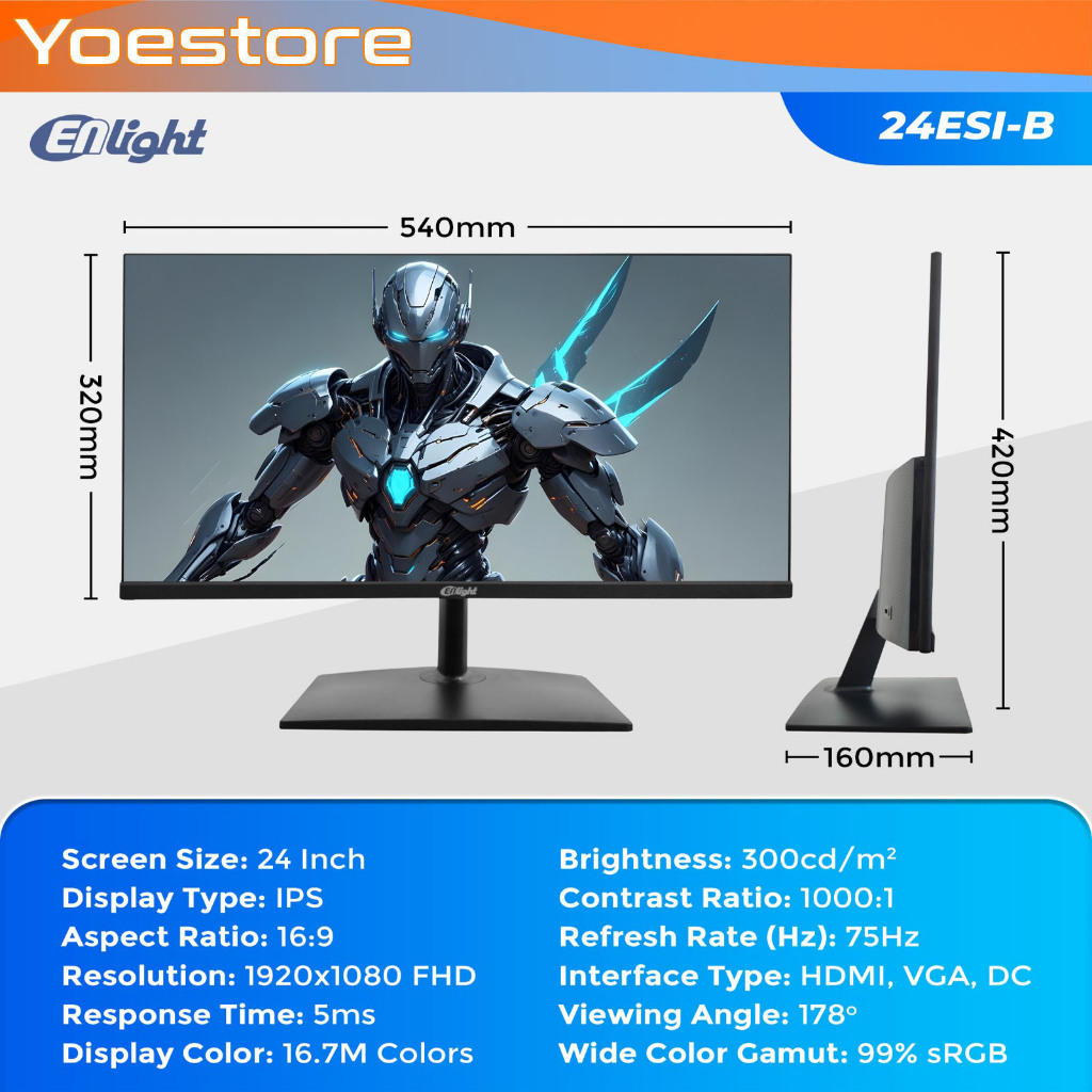 MONITOR LED ENLIGHT 24ESI-B 24" IPS FHD 75HZ 5MS HDMI VGA DC 99 PERSEN SRGB ANTI-BLUE FLICKER
