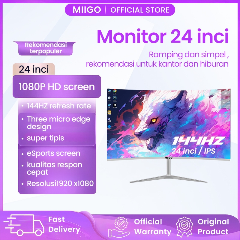 MIIGO- MONITOR, MONITOR GAME PROFESIONAL, MONITOR 24 INCI, TAMPILAN LENGKUNG, PANEL IPS, (144HZ/165HZ) KECEPATAN REFRESH TINGGI, TAMPILAN HD