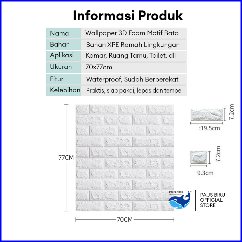 Paus Biru - Paket 10 Lembar Wallpaper Dinding Foam Timbul 3d Bata Classic Brick 70x77cm