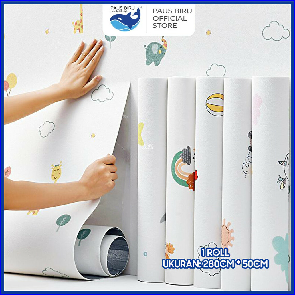 Paus Biru - Wallpaper Linen Roll Wallpaper Dinding Foam Dekorasi Kamar Wallpaper Coral Kartun 280cm 50cm 2mm A12