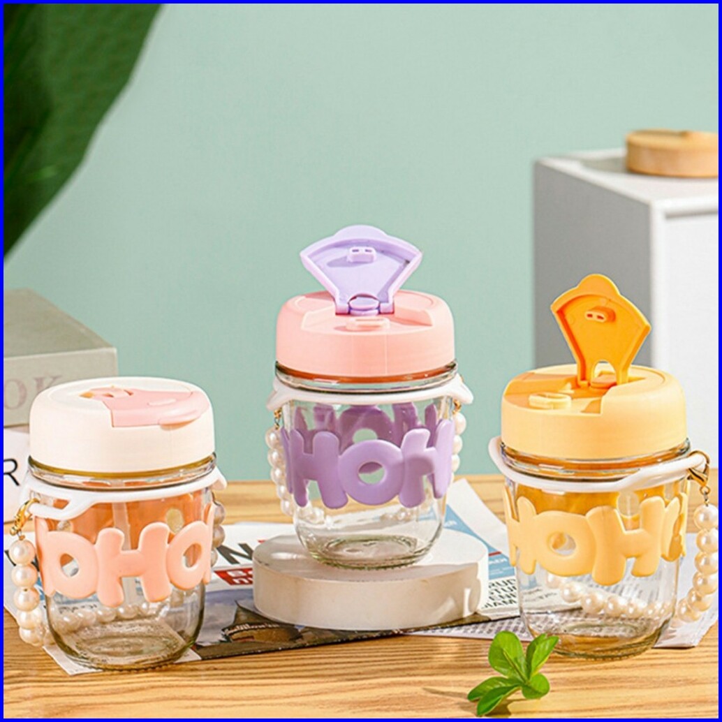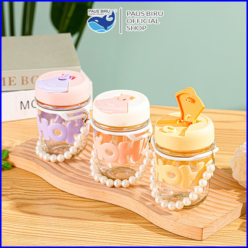 Paus Biru - Tumblr Gelas Kaca Gelas Kopi 350 Ml Aesthetic Cup Dengan Sedotan Kaca