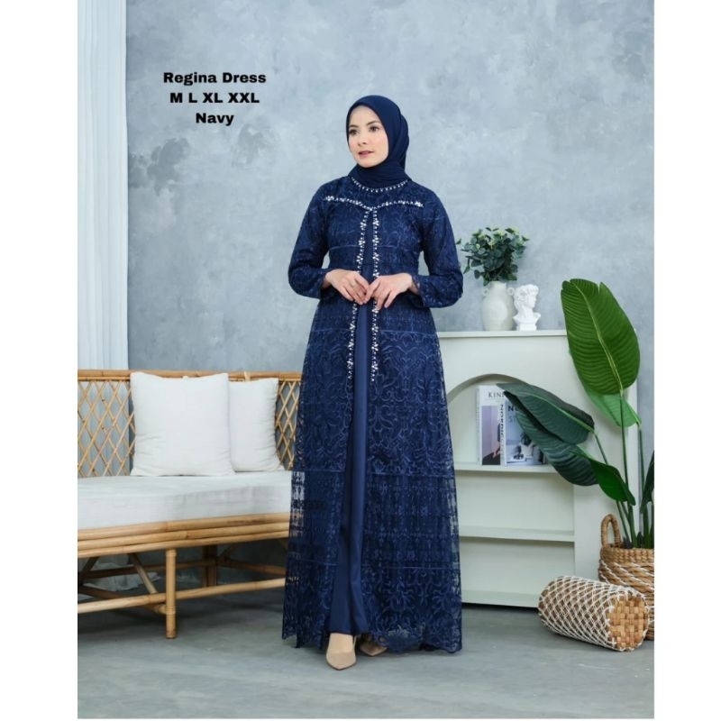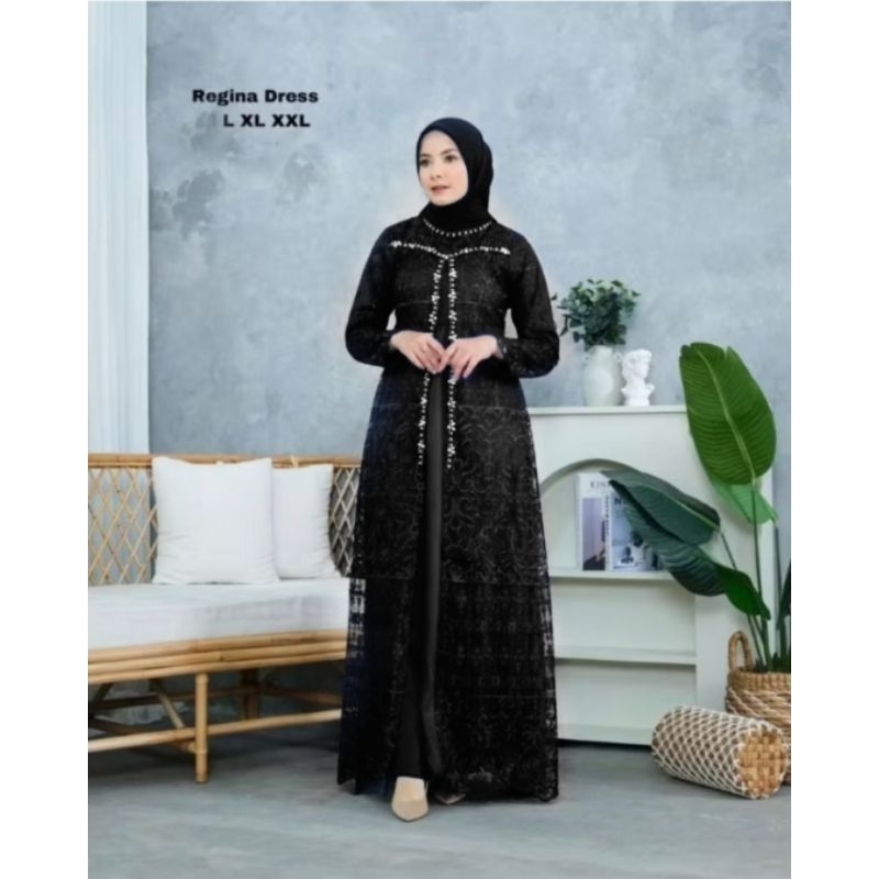 Regina Dress Lebaran Kondangan L XL XXL Premium Jumbo Mewah Gamis Muslim Produk Terbaru MIlo Taro Rosegold Hitam Sage
