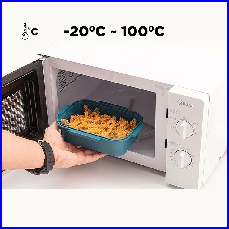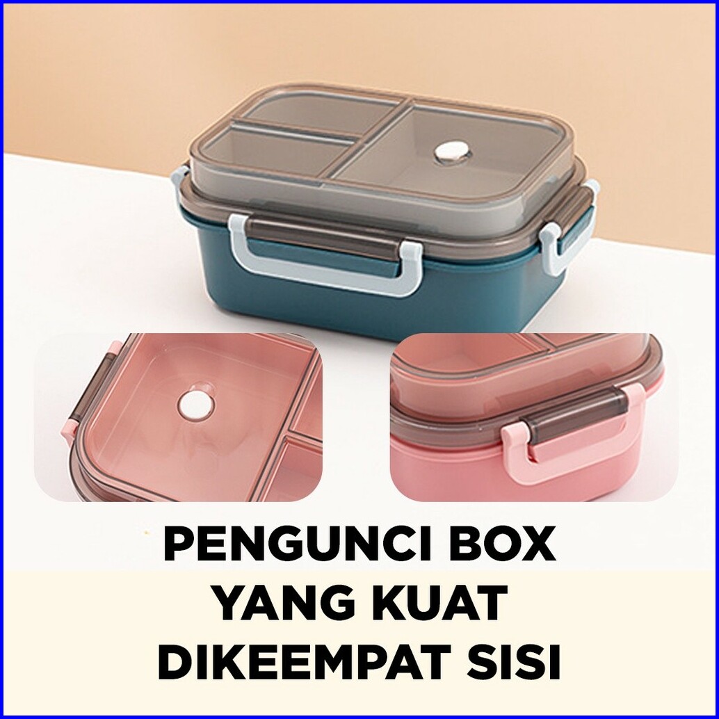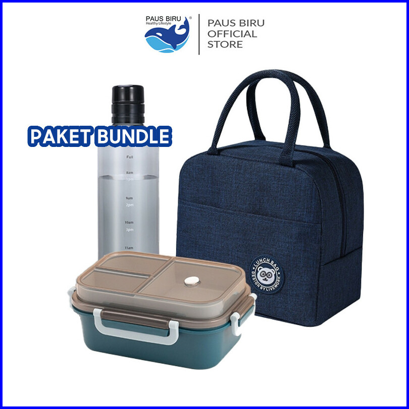 Paus Biru - 2in1 Kotak Tempat Makan Set 2 3 Sekat Anti Tumpah Lunch Box Susun Sendok Garpu Portable