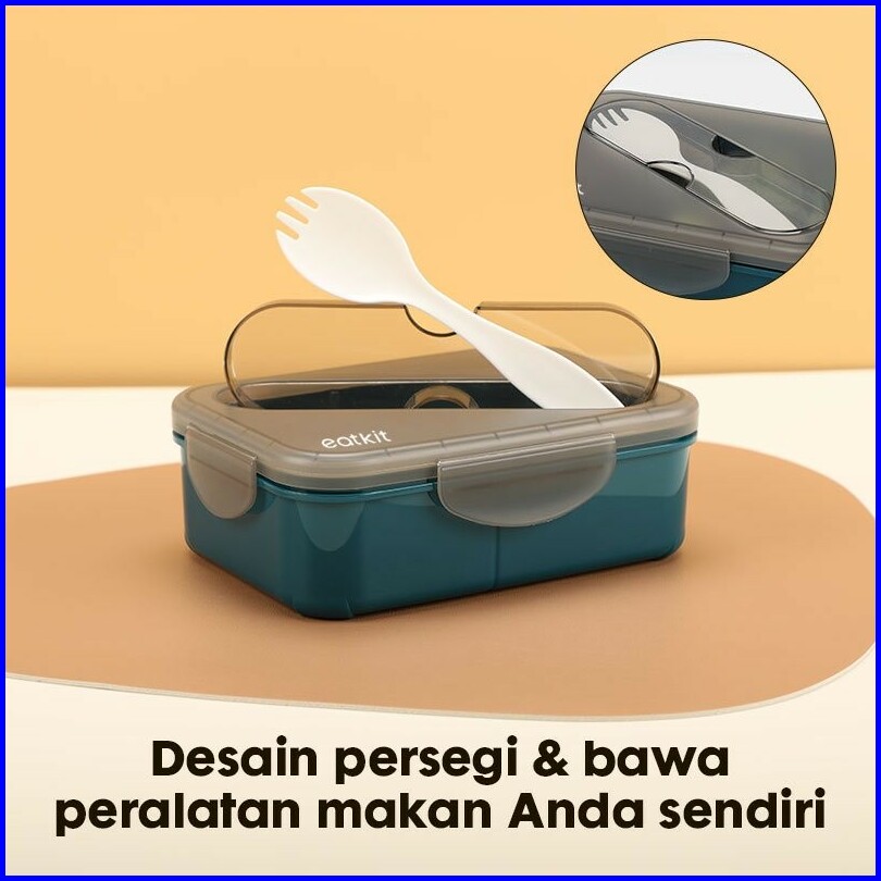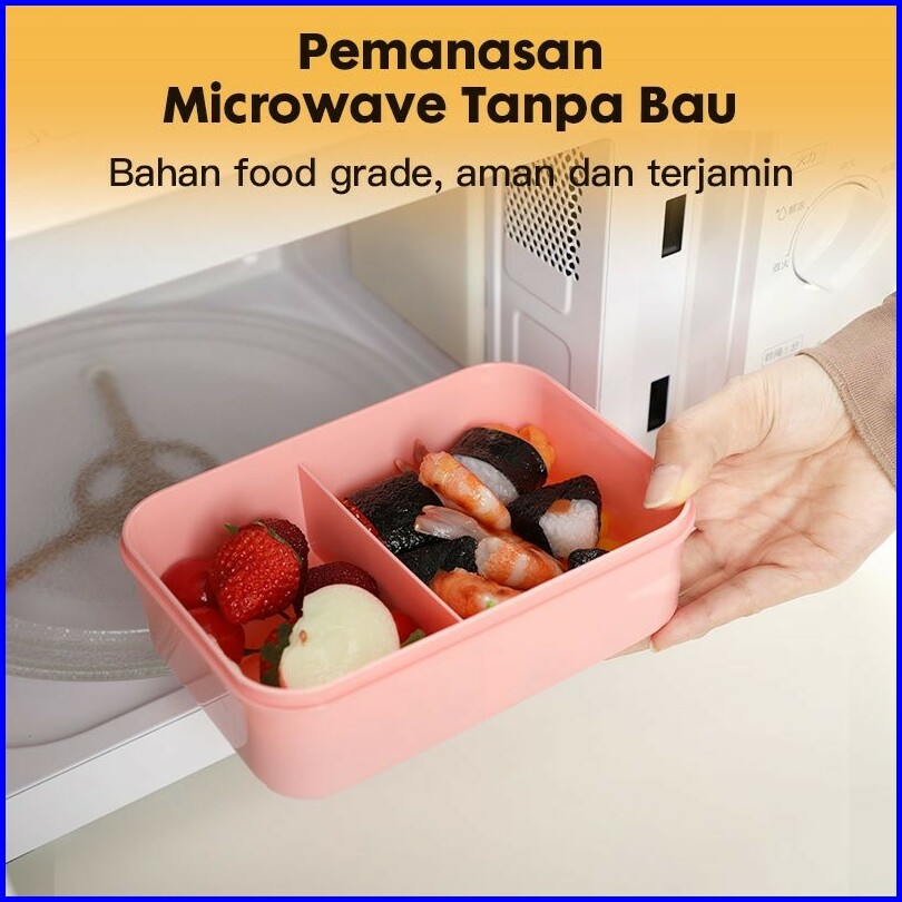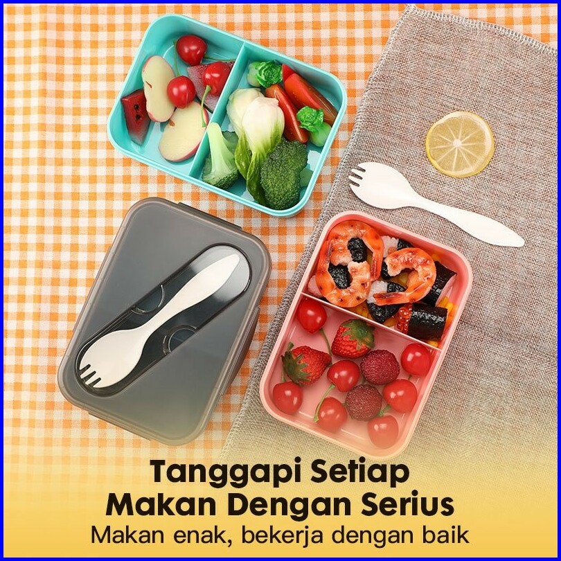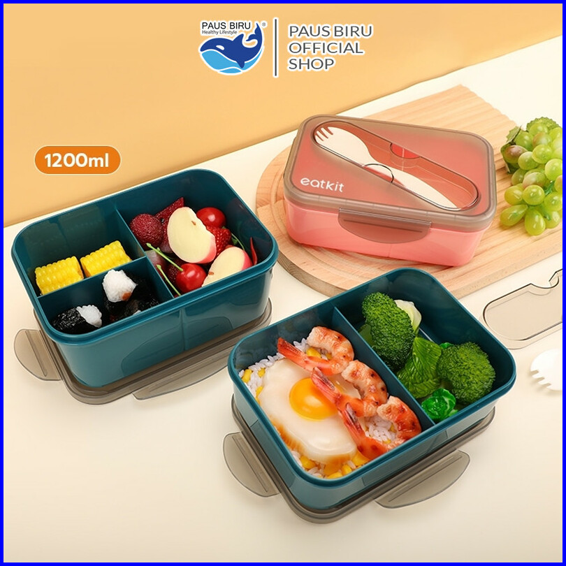 Paus Biru - Kotak Makan Siang Portabel Terisolasi Tiga Sekat Untuk Pekerja Kantor Pelajar Pemanas Microwave Garpu Dan Se