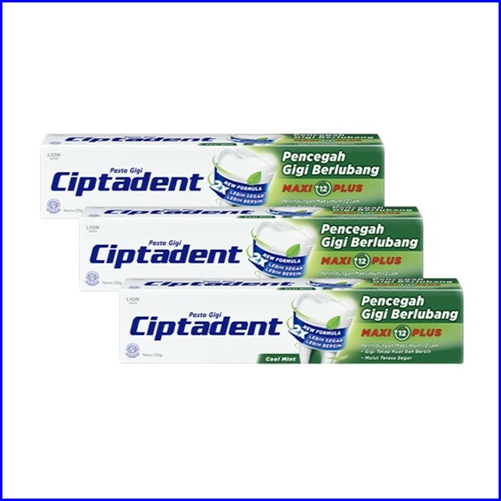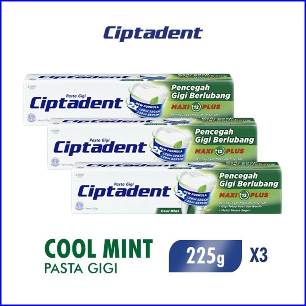 Ciptadent Pasta Gigi Maxi 12 Cool Mint Tube Plus Jumbo 225 Gr X3