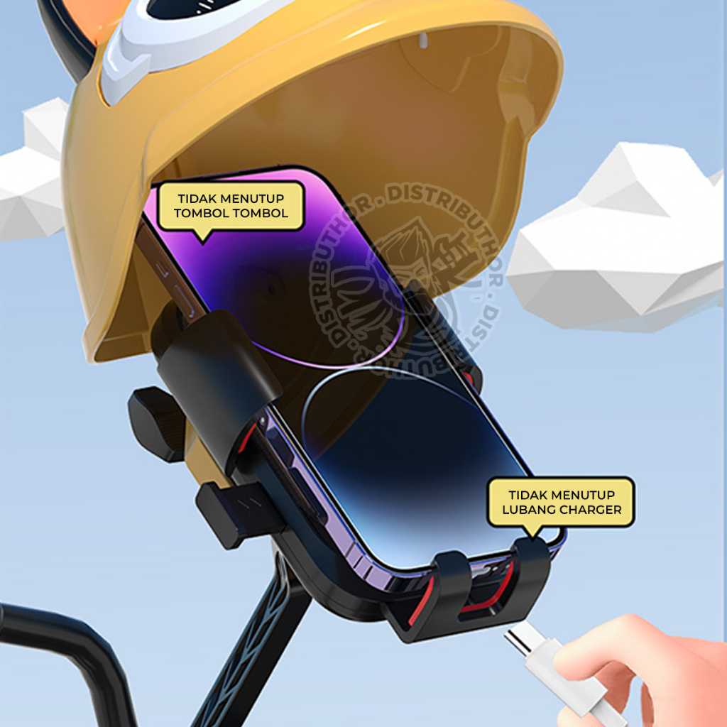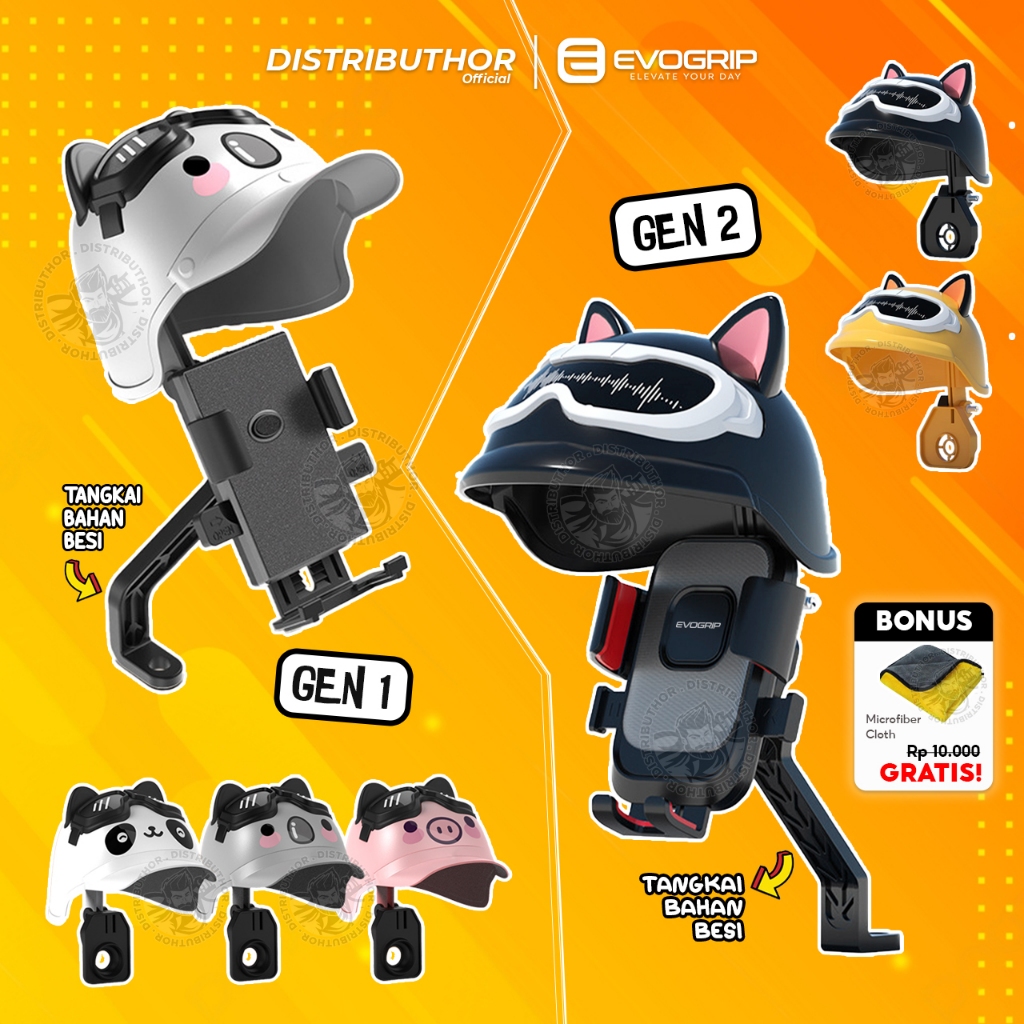 Holder Hp Motor + Topi Helm Lucu EVOGRIP GEN 2 EG71 Phone Holder Karakter Spion Besi Model Helm Dudukan Tempat Hape Pelindung Hujan Panas silau di sepion - DISTRIBUTHOR