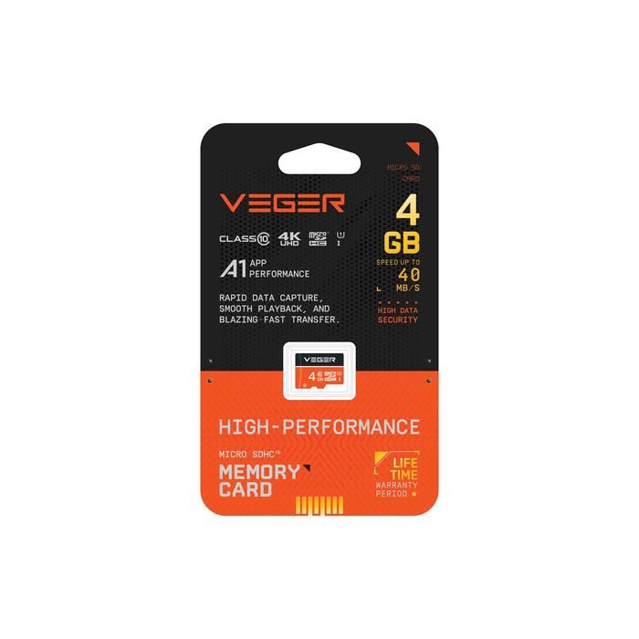 Memori Hp VEGER Memory Card 64GB 32GB 16GB 8GB 4GB Micro SD Kartu Memori HP Original - 4 gb