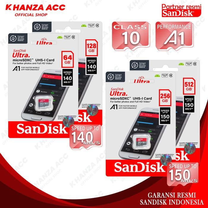 Memori Hp SANDISK 64GB 128GB 256GB 512GB MicroSD Kartu Memori Handphone C10 - 64GB 140MB
