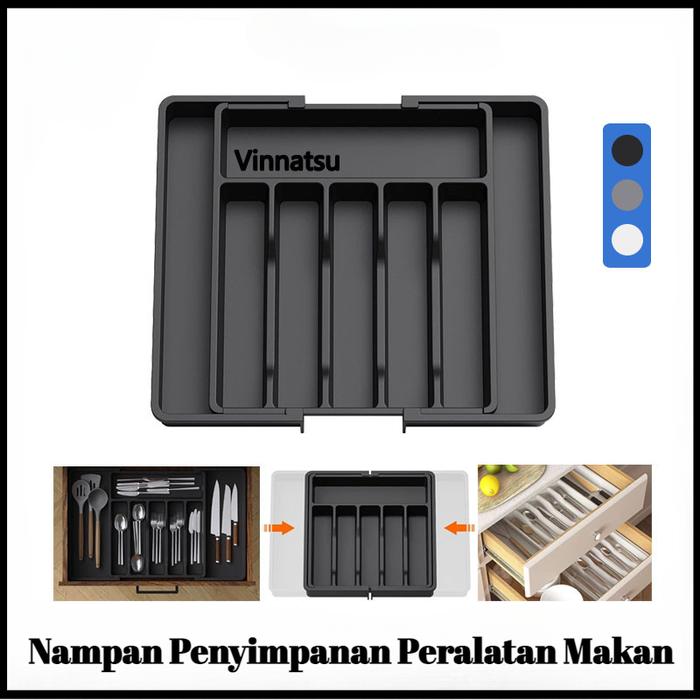 Vinnatsu-Nampan Penyimpanan Peralatan Makan Expandable Cutlery Tray Wadah Peralatan Alat Dapur Makan