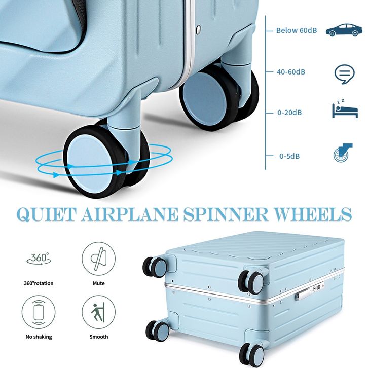 SEA CHOICE 20inci Koper Cabin Laptop Depan port Pengisian USB, Hardshell PC Rangka Aluminium Luggage