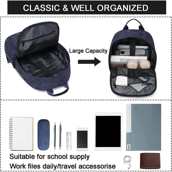 SEA CHOICE Ransel Perjalanan Santai Ringan Port USB Unisex, Laptop Laki-laki dan backpack Sekolah