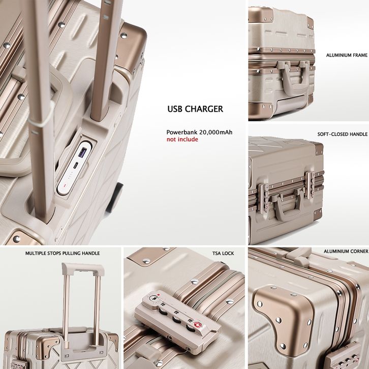 SEA CHOICE - Carry On Koper 20 inch PC Alumunium Hardcase TSA Kabin Travel Luggage
