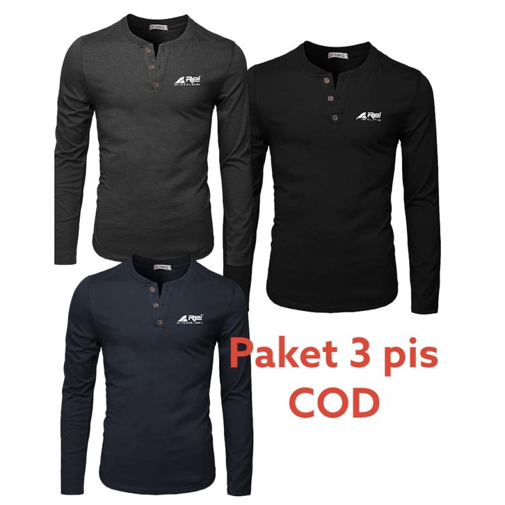 Pakaian Pria Kaos Kancing 3PCS Lengan Panjang Polos Baju Cowok Harian Paket Bundling Kaos Pria 3 Pcs Kaon Lengan Panjang