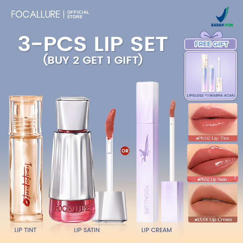 [B2G1]FOCALLURE 2PCS Lip Set Glazed LipTint LipSatin Velvet LipCream16H Transferproof Lightweight