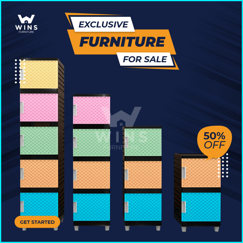 Wins Lemari Rak Susun Pakaian Baju Plastik Minimalis Serbaguna Motif Rotan 1 Pintu