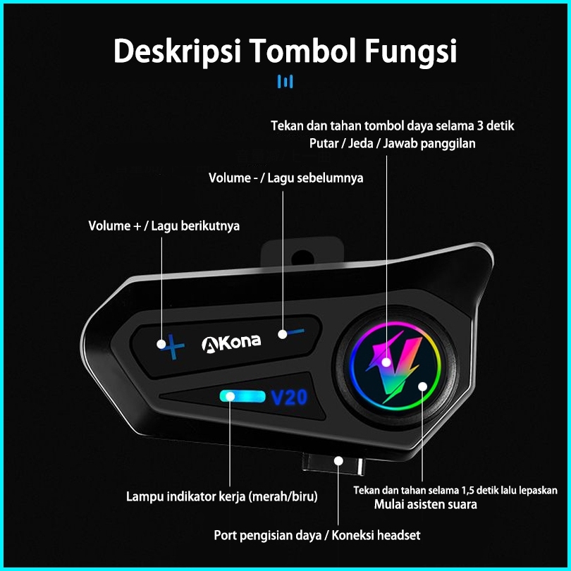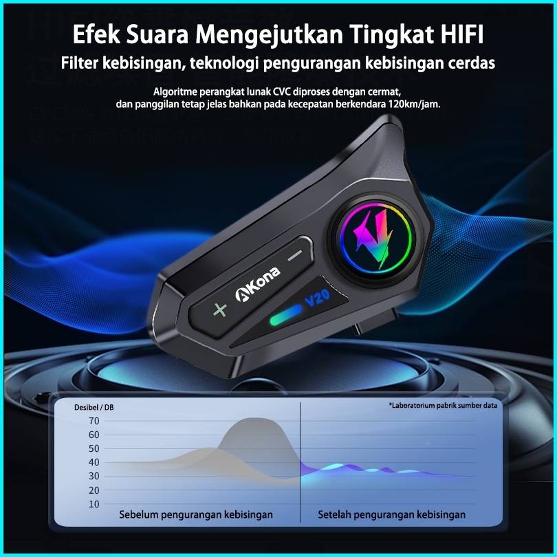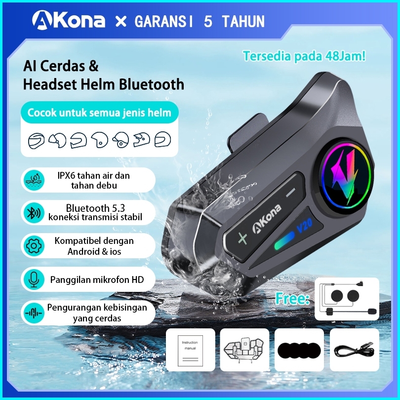 Akona Intercom Helm Motor Headset Helm Bluetooth Hands Free Ipx7 Tahan Air Headphone Helmet Wireless Free Microphone