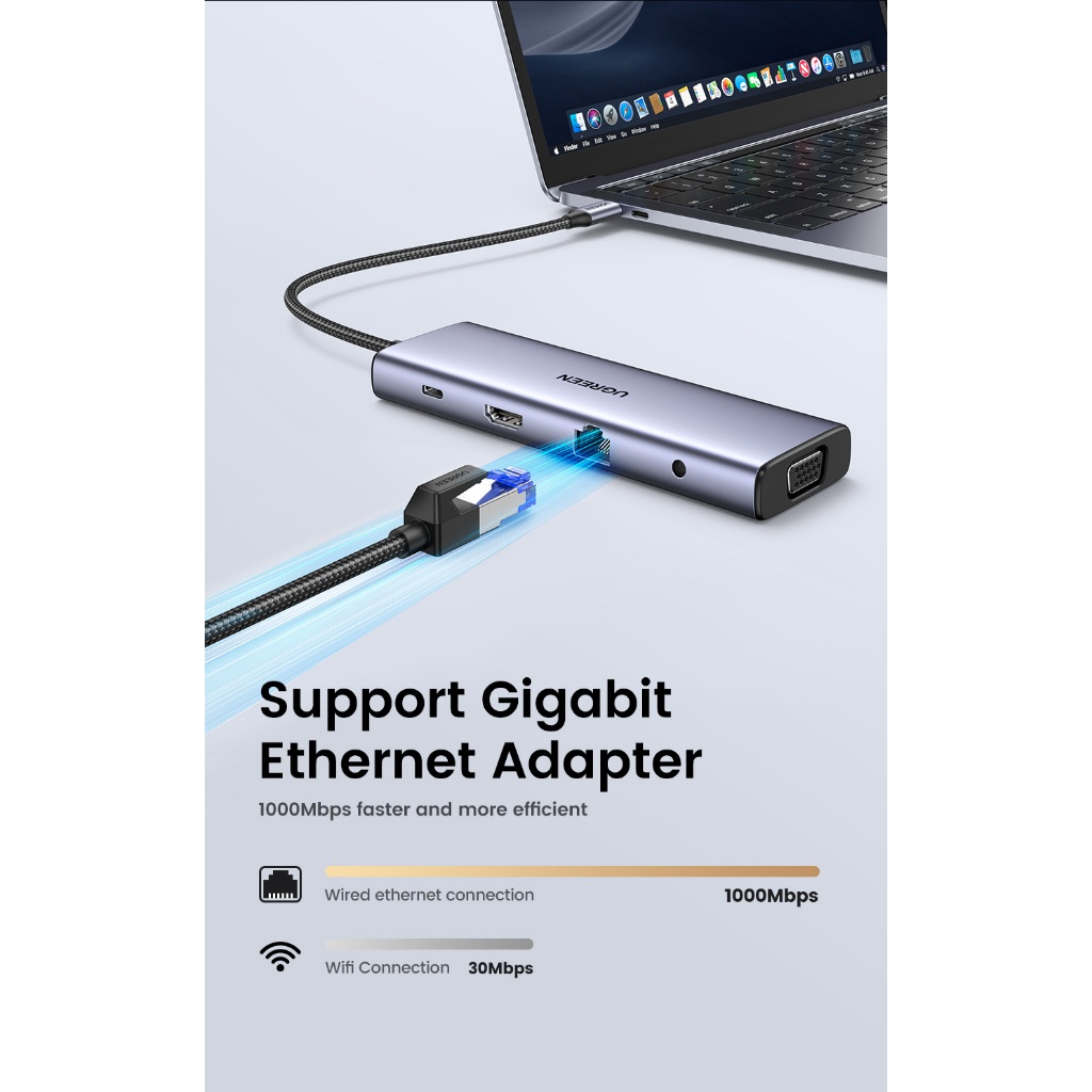 [Mall] UGREEN HUB Adapter Multiport 10 In 1 Type C To USB 3.0 HDMI VGA RJ45 SD TF Card