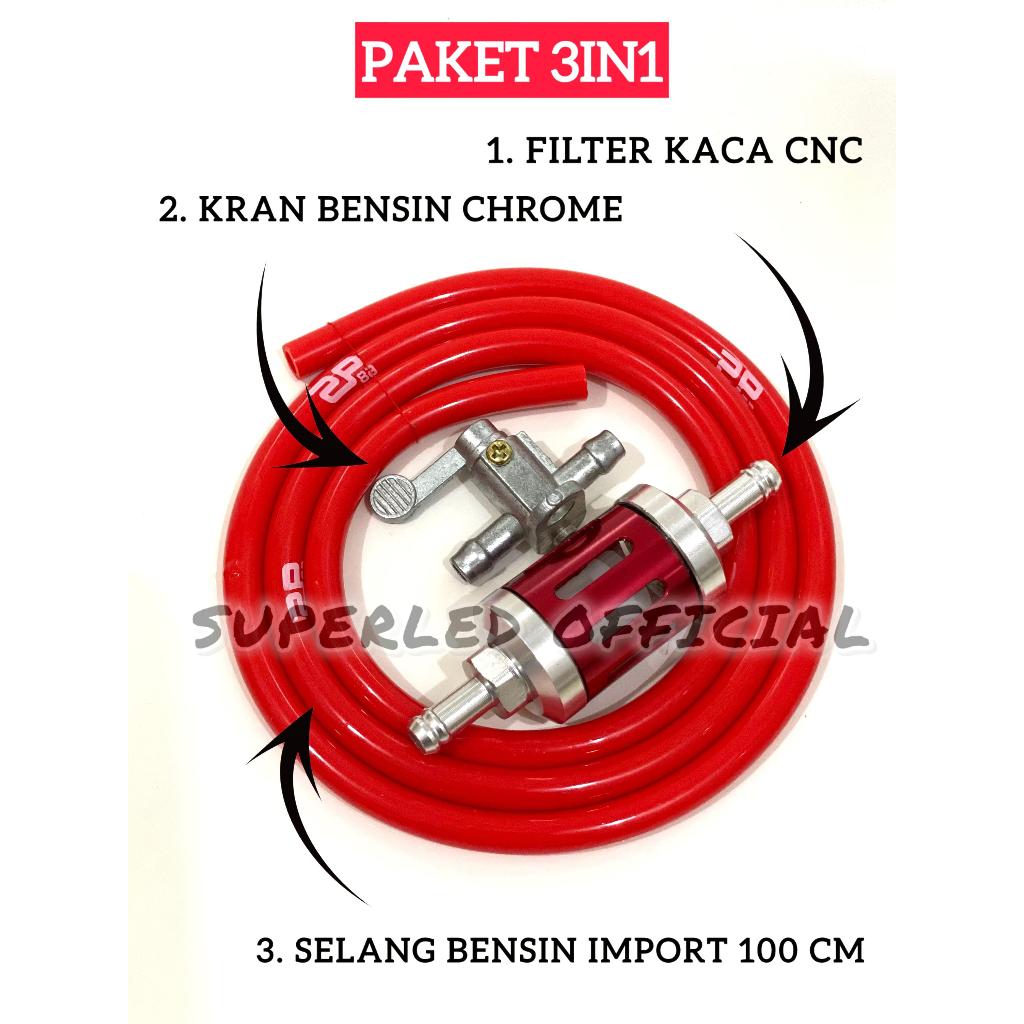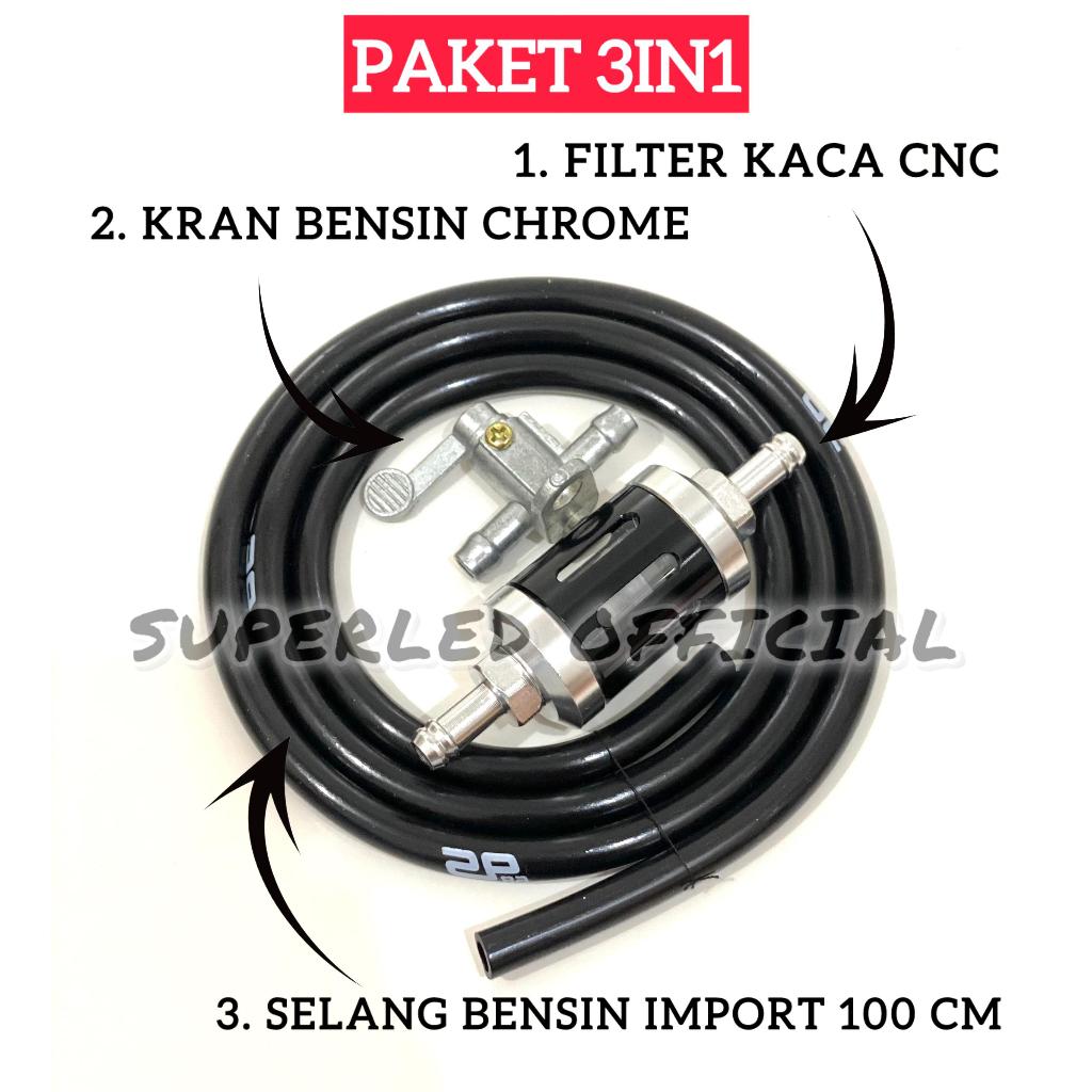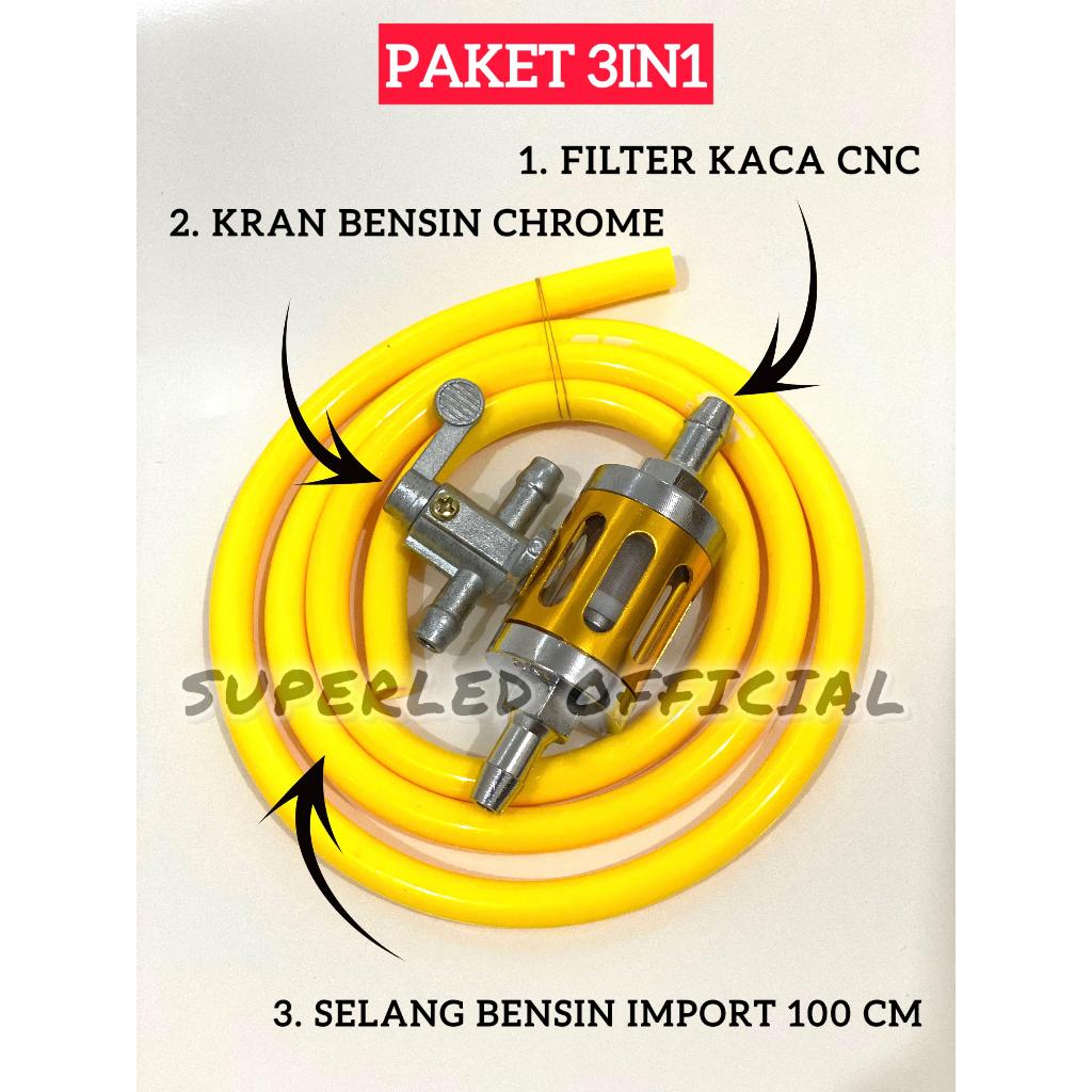 PAKET Selang Bensin SPEEDBOOST89 + Filter Saringan Bensin Kaca + Kran Bensin Chrome Universel