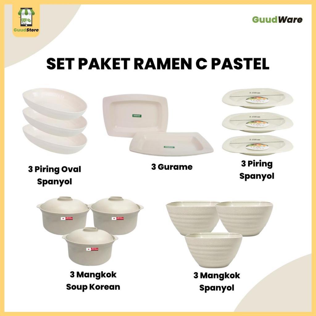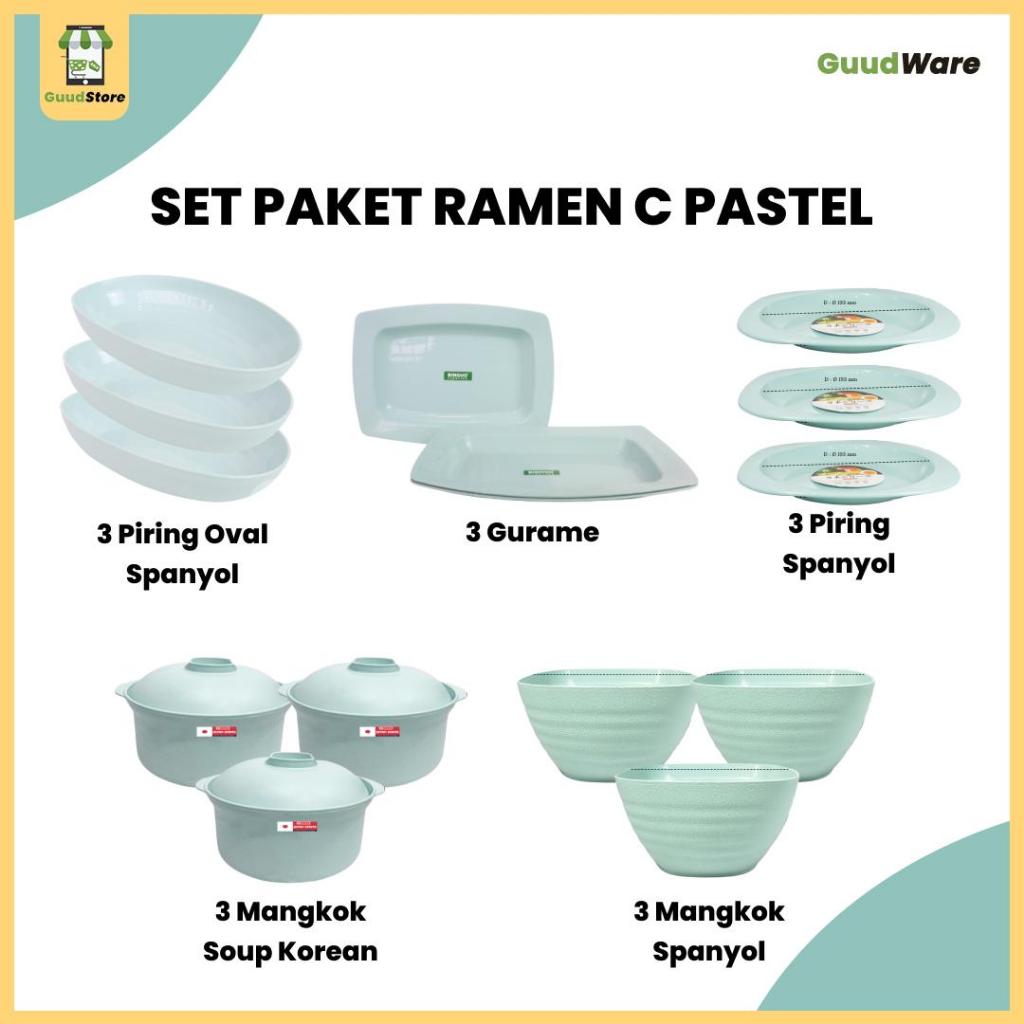Set Paket Ramen Jepang Pastel Korean Colour Piring Makan Gelas dan Mangkuk Kitchenware Plastik PP5 Food Grade