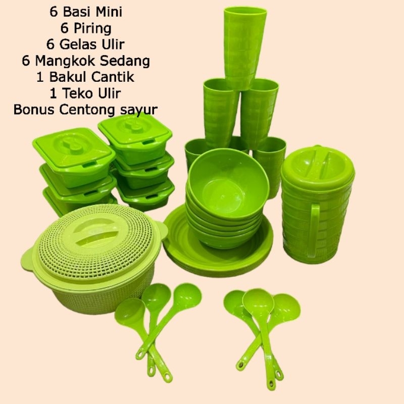 Paket Set Prasmanan Lengkap isi 32 pcs (6 Basi Mini + 6 Piring Makan+ 6 Mangkok Sedang+ 6 Gelas Ulir + 1 Teko ulir + 1 B