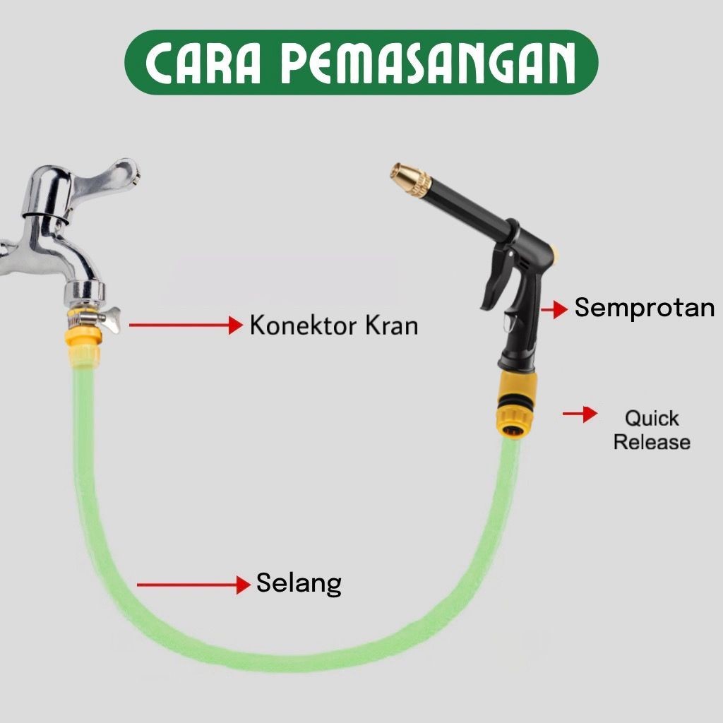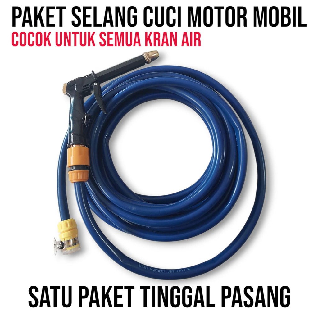 Selang Air & Semprotan Cuci Motor Mobil Siram Taman Selang Dop Elastis Komplit Tinggal Colok Pasang Kran Selang Air Cuci