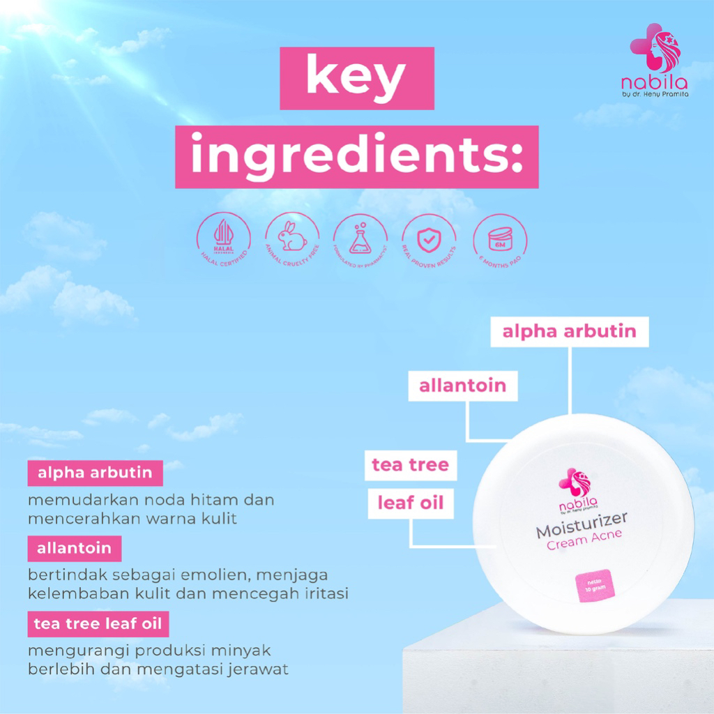 NABILA - Moisturizer Cream Acne | Pelembab Wajah Berjerawat | Pelembab Wajah Nabila | Nabila Skincare | Nabila by dr Heny Pramita