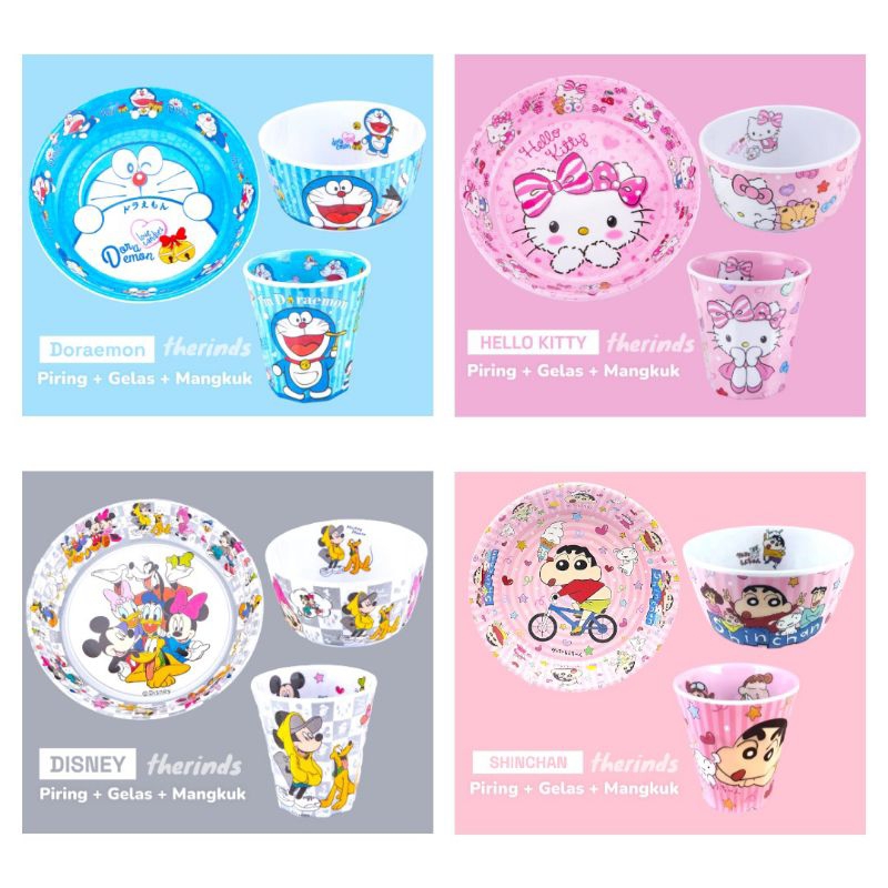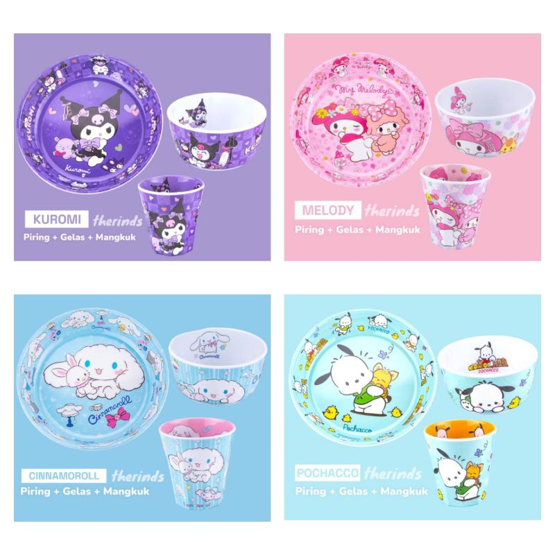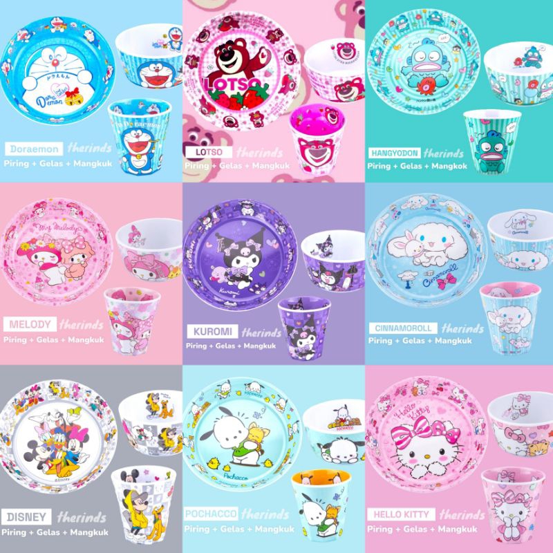 Set Alat Makan Piring Gelas Mangkuk Karakter Kuromi Melody Cinnamoroll Melamin FOOD GRADE